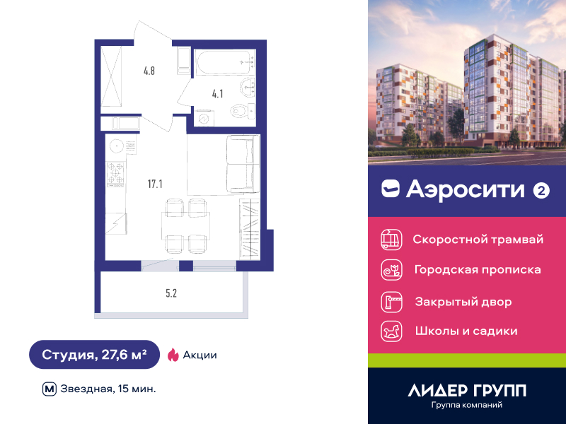 Квартиры-студии в ЖК «AEROCITY 2 (Аэросити )»