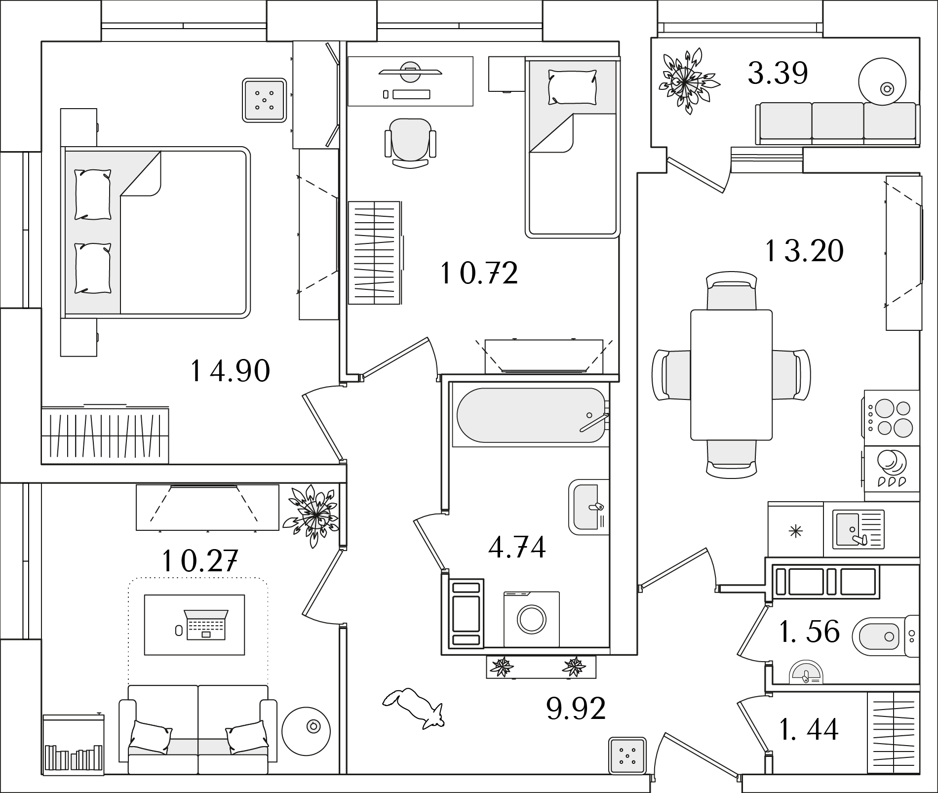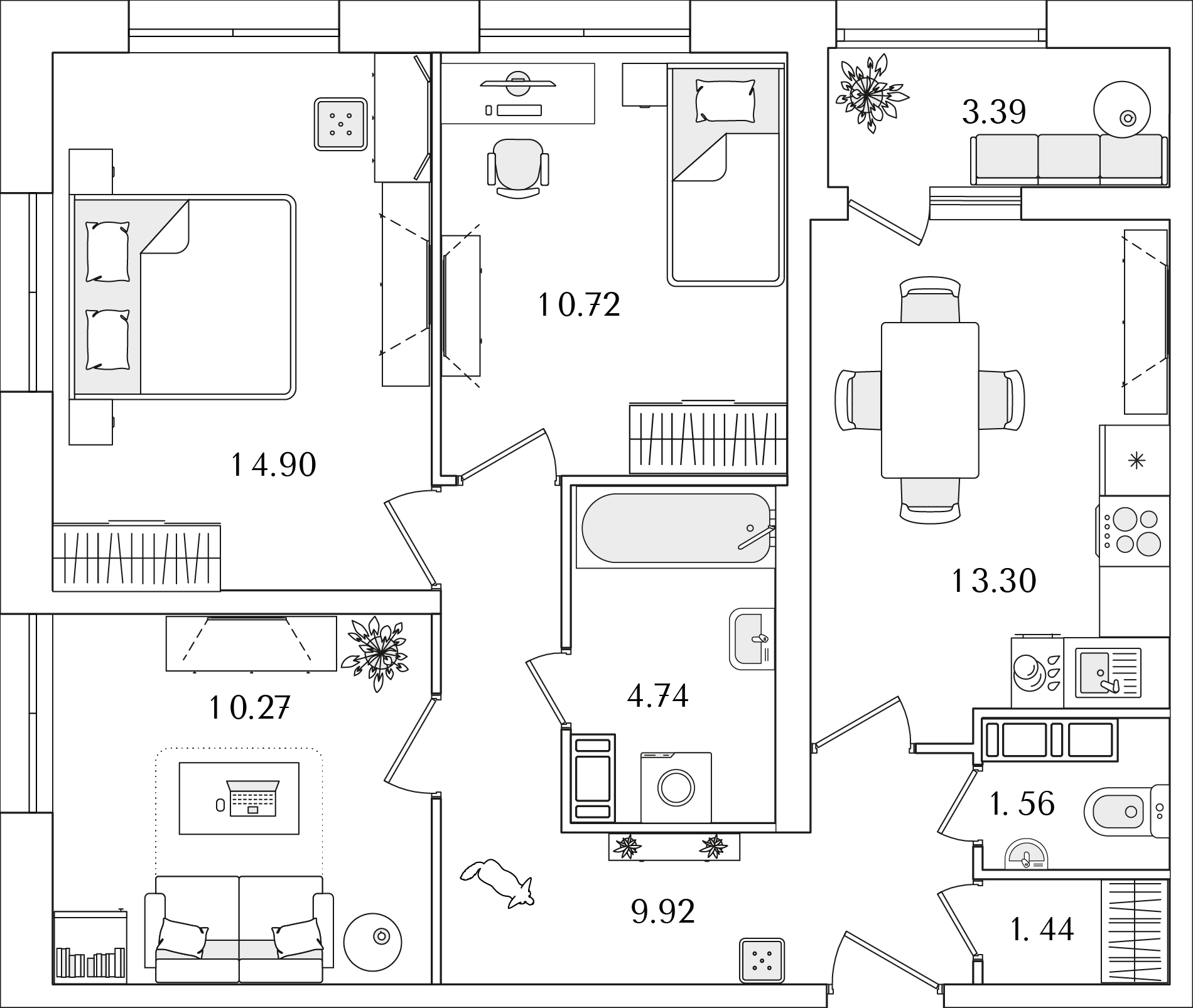 Среди квартир комплекса есть уникальные лоты с террасами, мастер-спальнями и гардеробными. Квартиры на последних этажах имеют уникальные видовые характеристики, увеличенную площадь остекления и высокие потолки (от 3 метров). Каждый сможет подобрать планировку под свой уклад жизни. Например, есть квартиры с большими гардеробными и кухнями-гостиными. А ценителям приватности понравятся мастер-спальни с собственным санузлом.