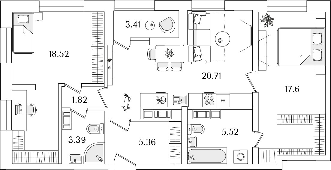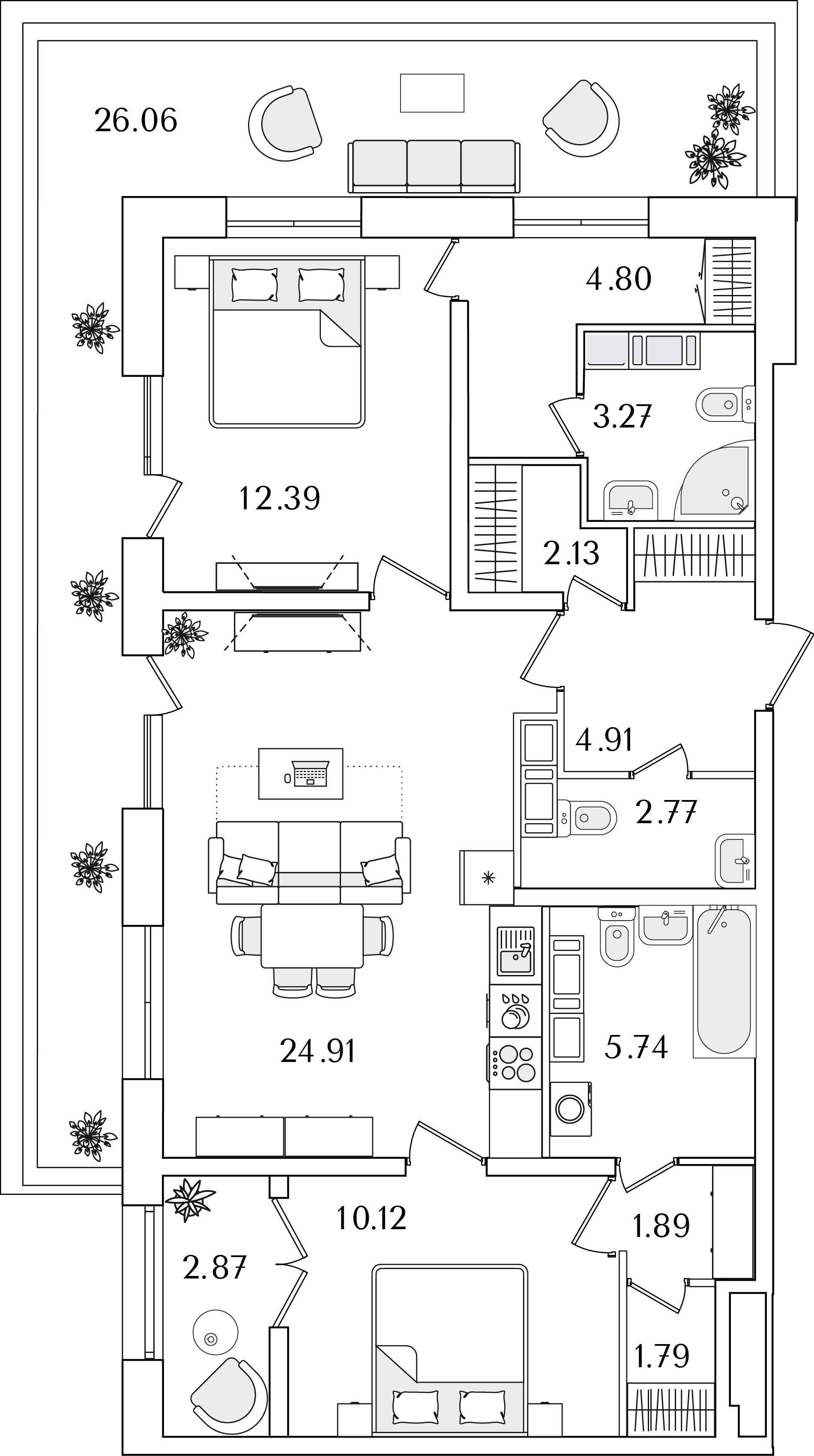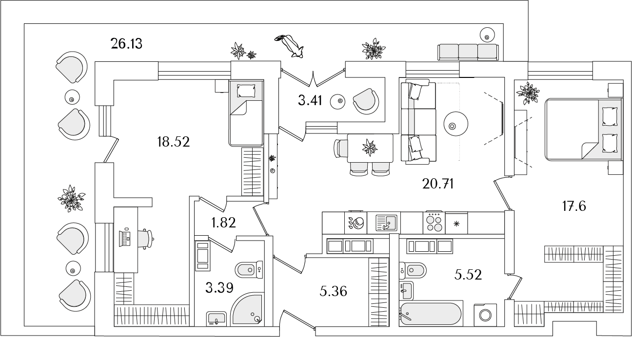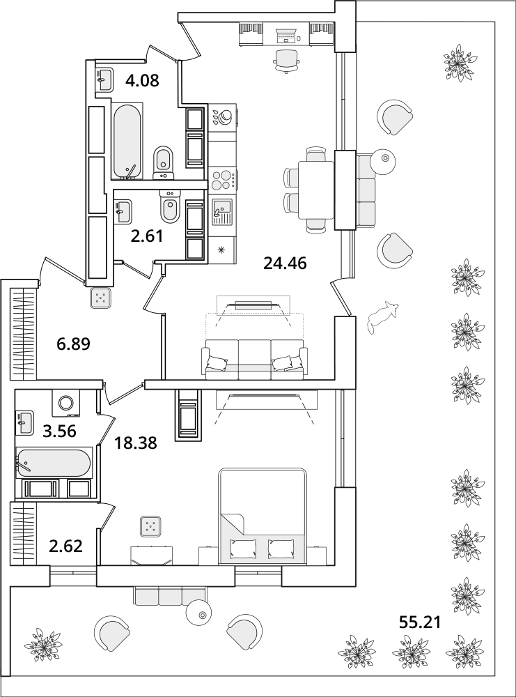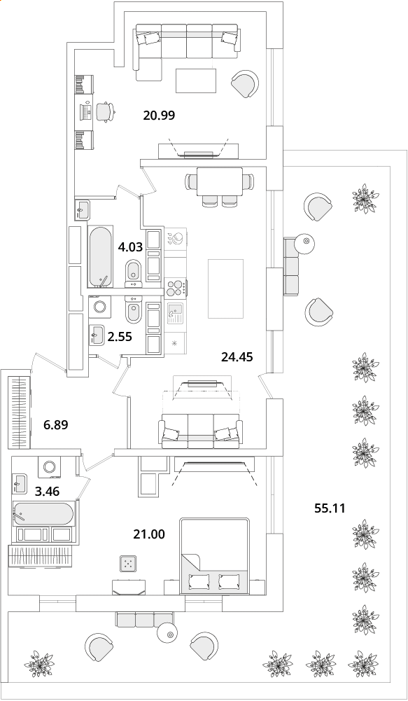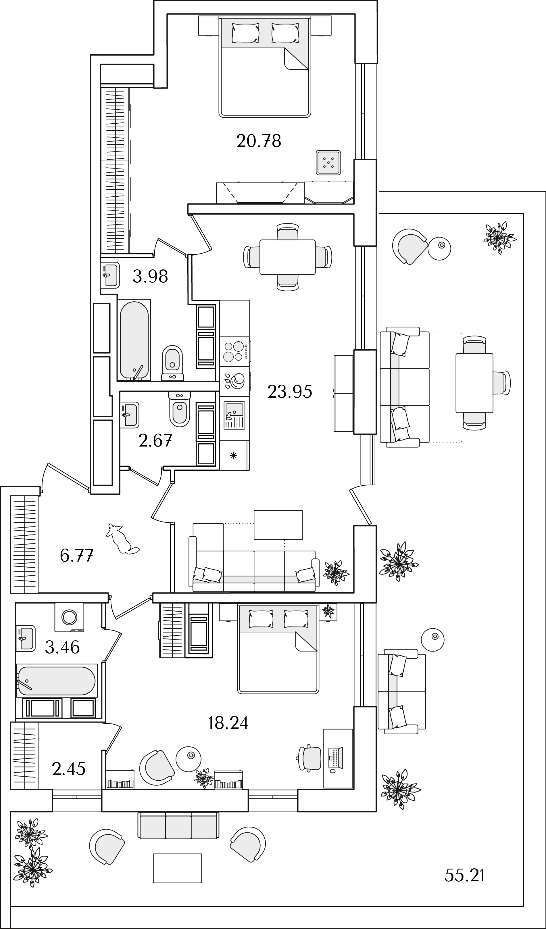 Среди квартир комплекса есть уникальные лоты с террасами, мастер-спальнями и гардеробными. Квартиры на последних этажах имеют уникальные видовые характеристики, увеличенную площадь остекления и высокие потолки (от 3 метров). Каждый сможет подобрать планировку под свой уклад жизни. Например, есть квартиры с большими гардеробными и кухнями-гостиными. А ценителям приватности понравятся мастер-спальни с собственным санузлом.