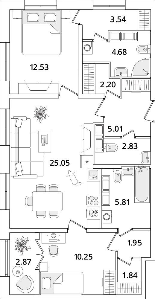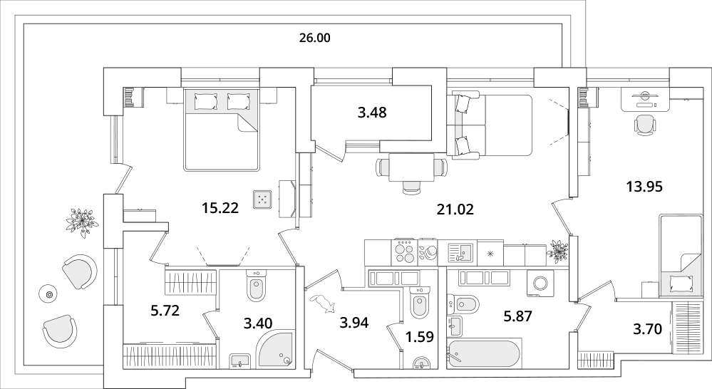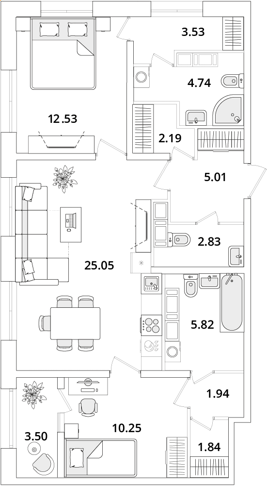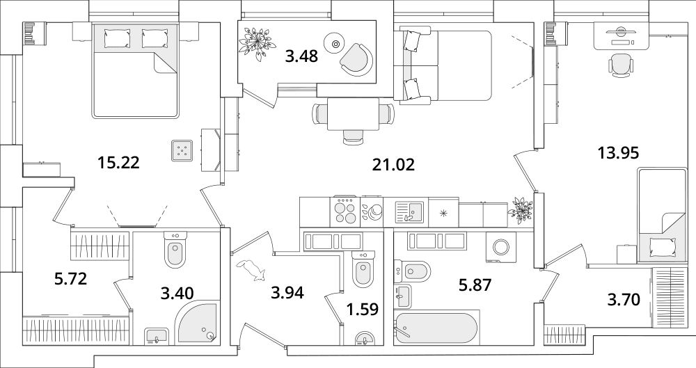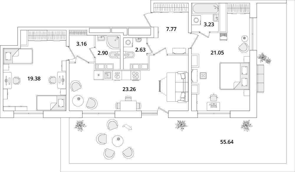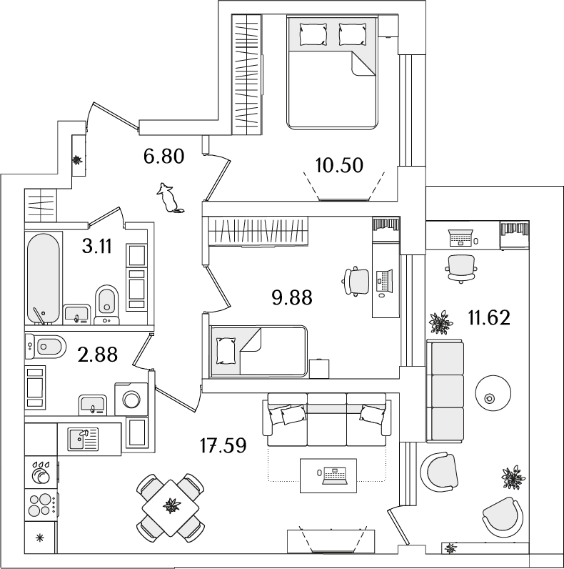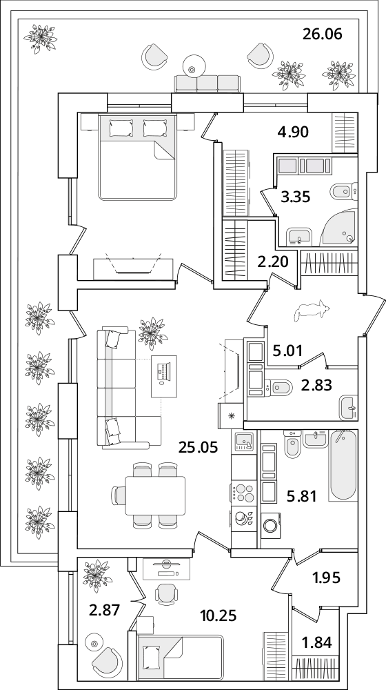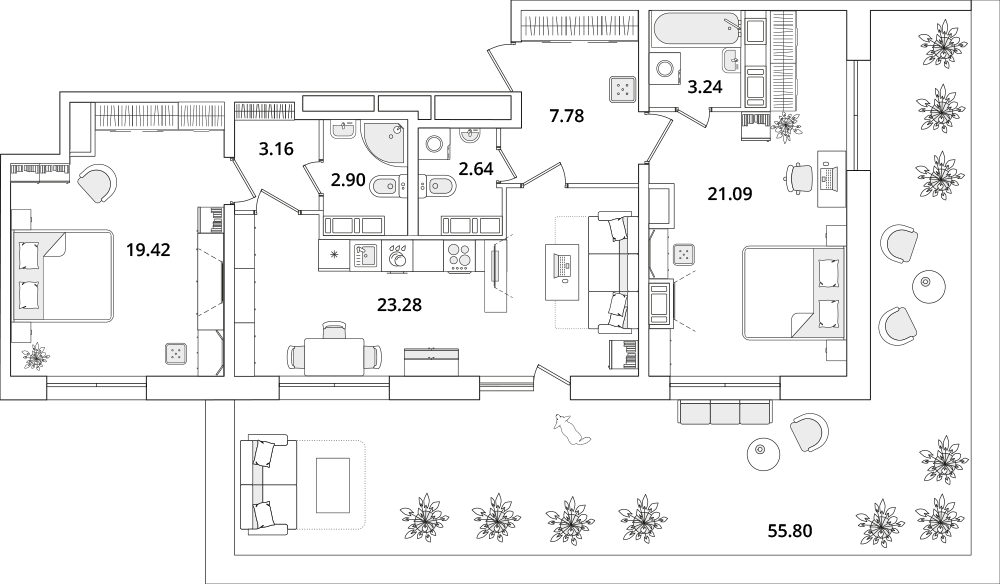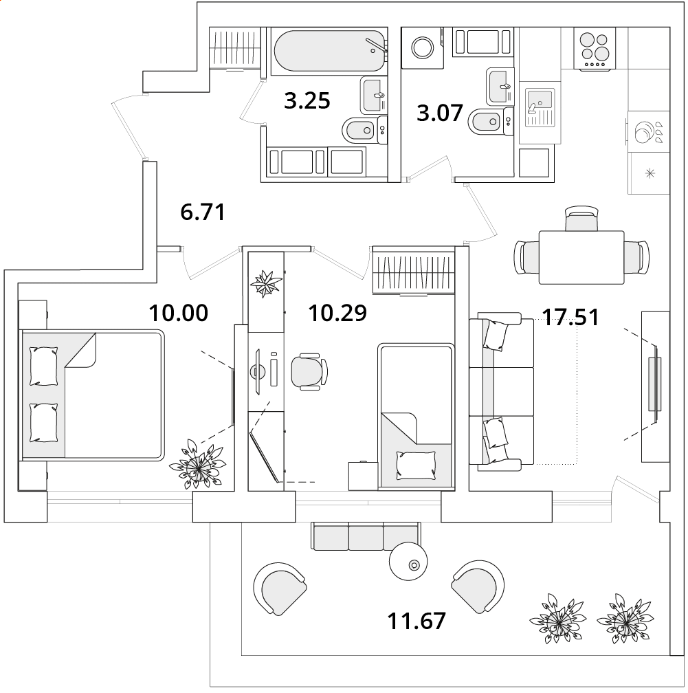 Среди квартир комплекса есть уникальные лоты с террасами, мастер-спальнями и гардеробными. Квартиры на последних этажах имеют уникальные видовые характеристики, увеличенную площадь остекления и высокие потолки (от 3 метров). Каждый сможет подобрать планировку под свой уклад жизни. Например, есть квартиры с большими гардеробными и кухнями-гостиными. А ценителям приватности понравятся мастер-спальни с собственным санузлом.