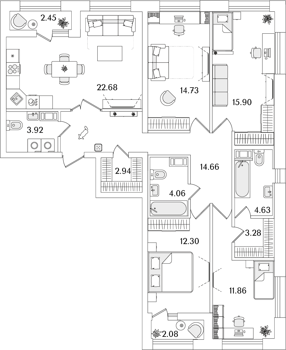 Евро четырехкомнатные квартиры в ЖК БелАрт