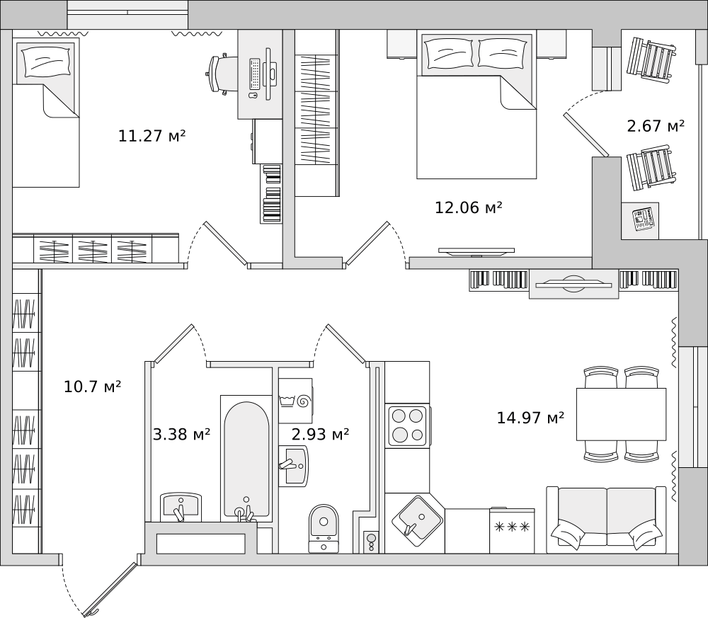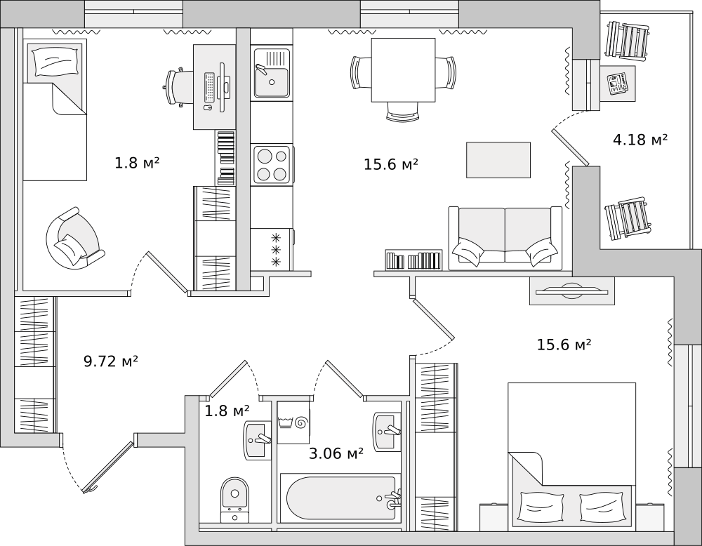Во дворах будут расположены детские площадки с безопасным покрытием и современными игровыми комплексами. Для взрослых спроектированы тихие зоны отдыха, прогулочные дорожки и спортивные площадки. Специально для велосипедистов, родителей с колясками, малышей на самокатах или роликах и всех‐всех, кому тяжело преодолевать лестницы, входы в подъезды — без ступеней, на уровне земли.