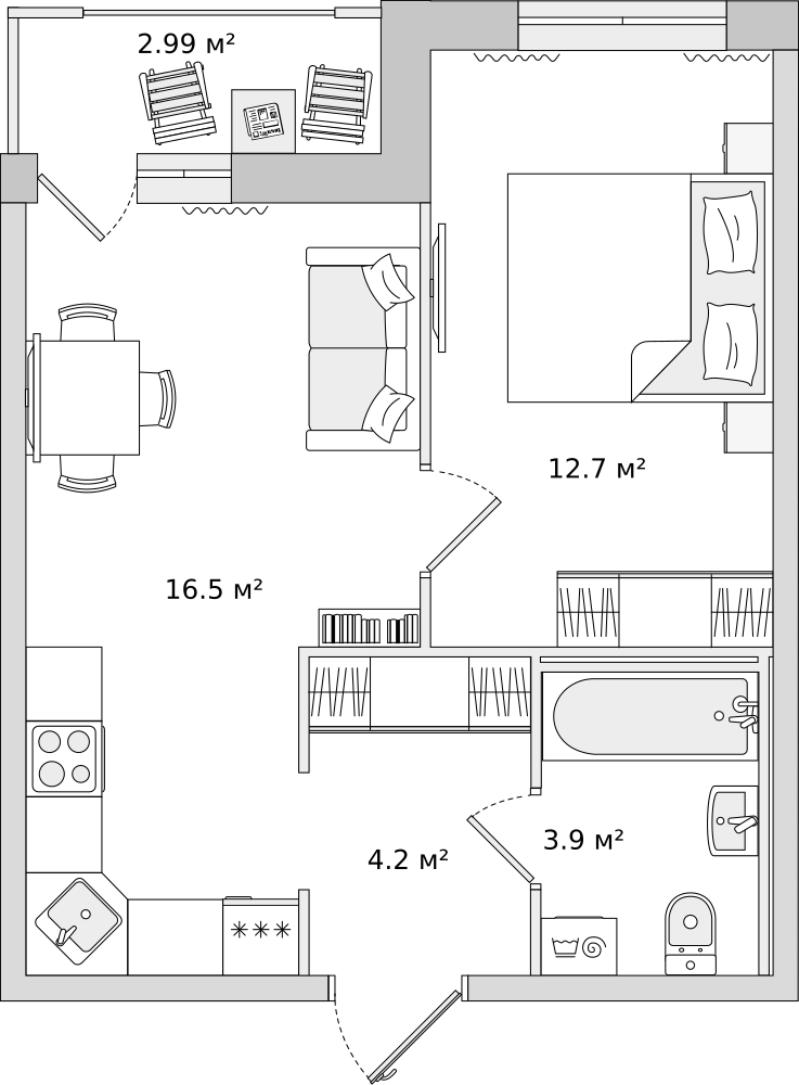 Во дворах будут расположены детские площадки с безопасным покрытием и современными игровыми комплексами. Для взрослых спроектированы тихие зоны отдыха, прогулочные дорожки и спортивные площадки. Специально для велосипедистов, родителей с колясками, малышей на самокатах или роликах и всех‐всех, кому тяжело преодолевать лестницы, входы в подъезды — без ступеней, на уровне земли.