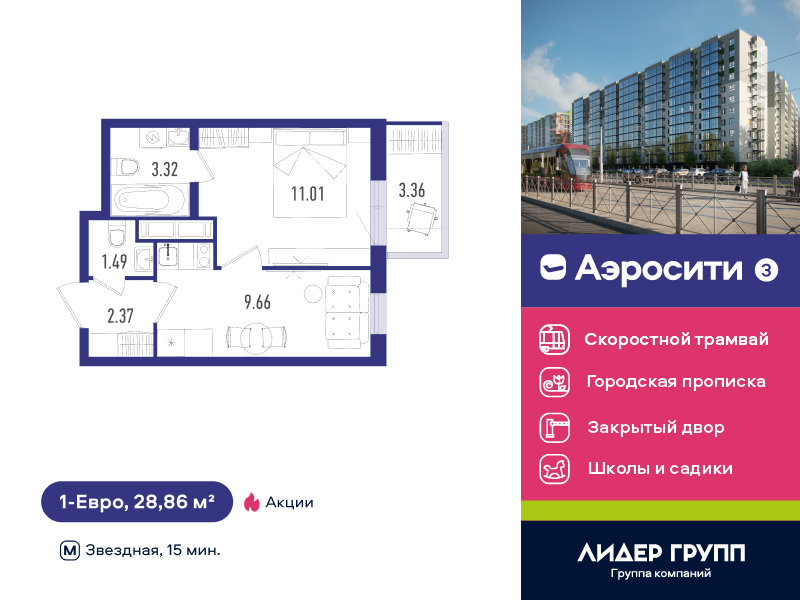Однокомнатные квартиры в ЖК «AEROCITY 3 (Аэросити 3)»