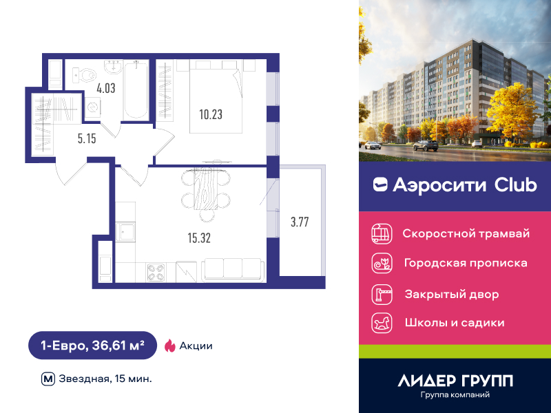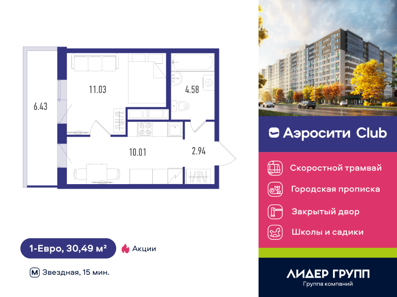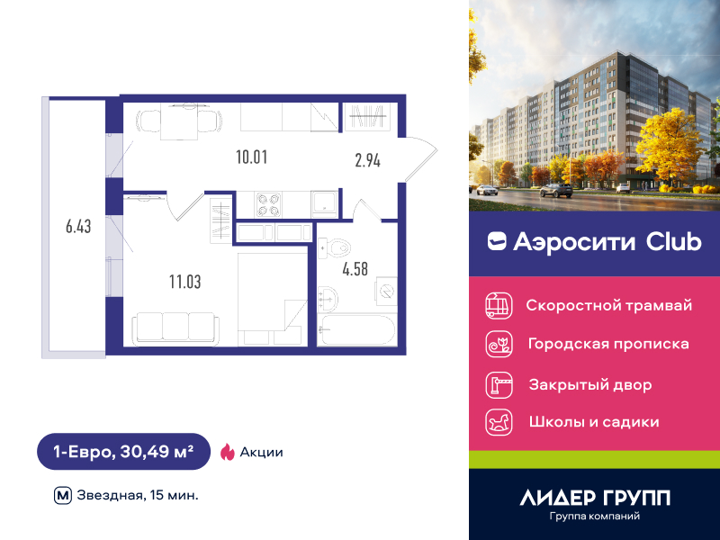 Однокомнатные квартиры в ЖК «AEROCITY Club (АЭРОСИТИ Клаб)»
