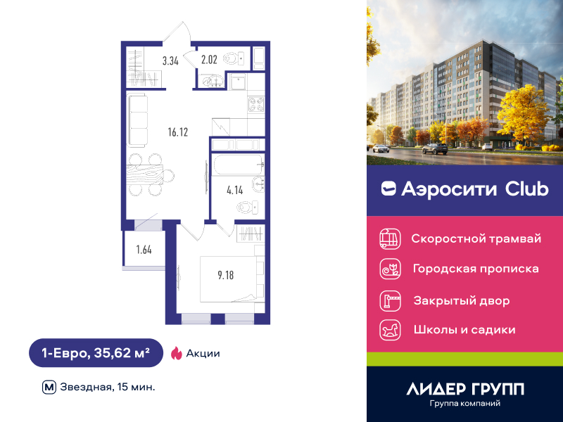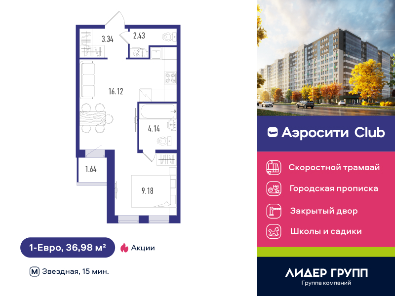 Евро однокомнатные квартиры в ЖК «AEROCITY Club (АЭРОСИТИ Клаб)»
