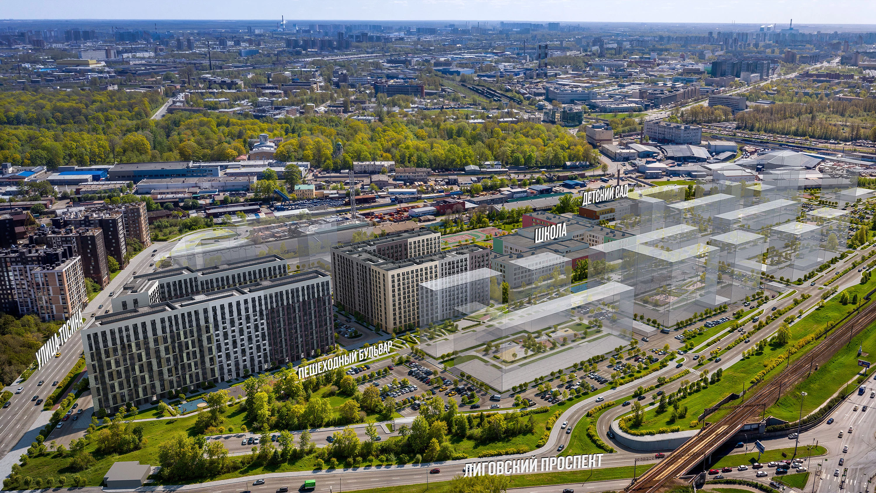 В проекте появится школа для 1250 детей и три детских сада. Школа и один из детских садов на 350 мест откроются одновременно с заселением первой очереди: это значит, что жители проекта смогут отдать своих детей в новые образовательные учреждения на территории квартала.