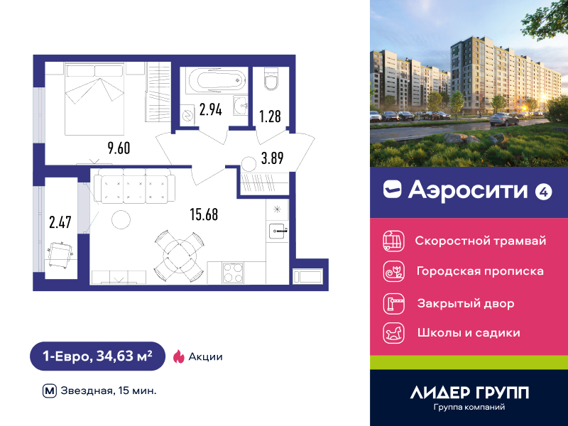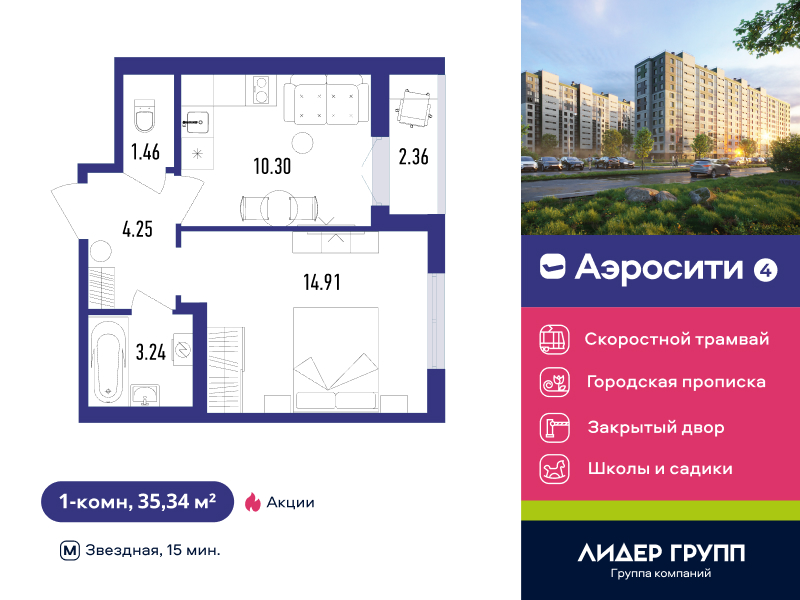Однокомнатные квартиры в ЖК «AEROCITY 4 (Аэросити 4)»