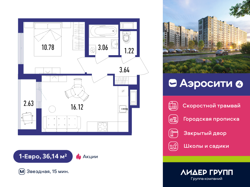 Евро однокомнатные квартиры в ЖК «AEROCITY 4 (Аэросити 4)»