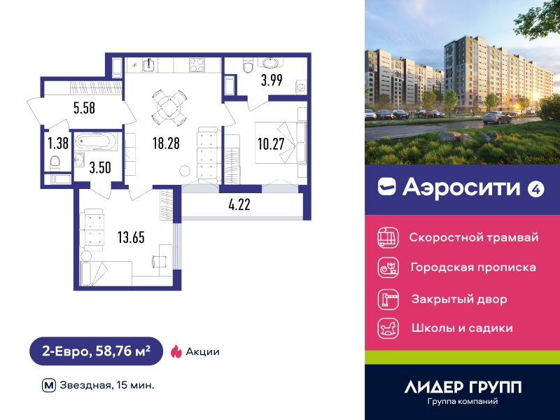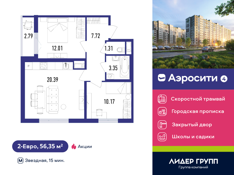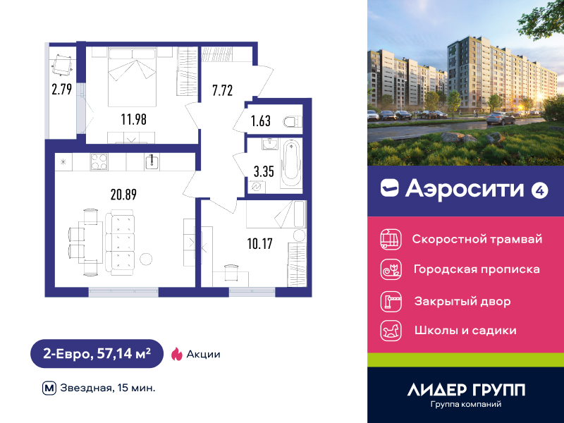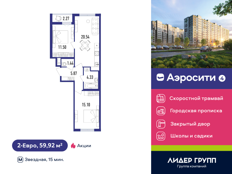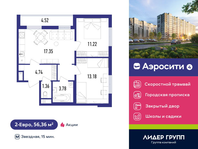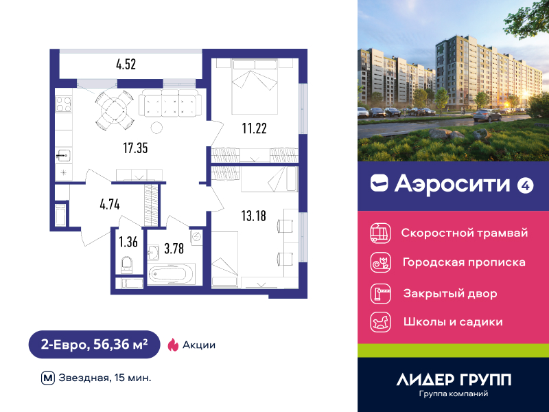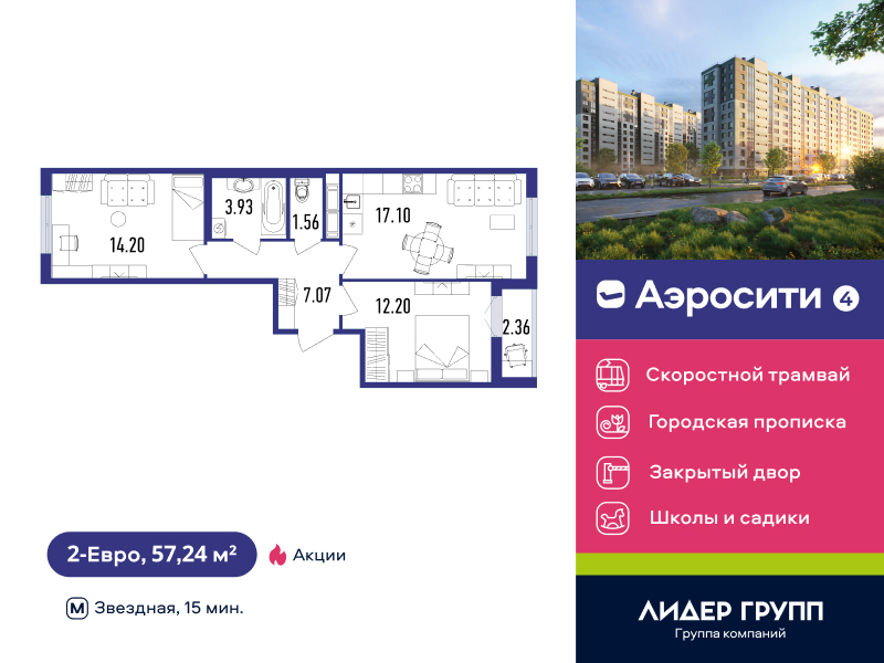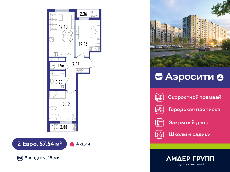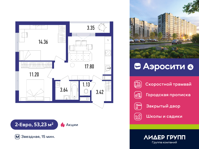 Евро двухкомнатные квартиры в ЖК «AEROCITY 4 (Аэросити 4)»