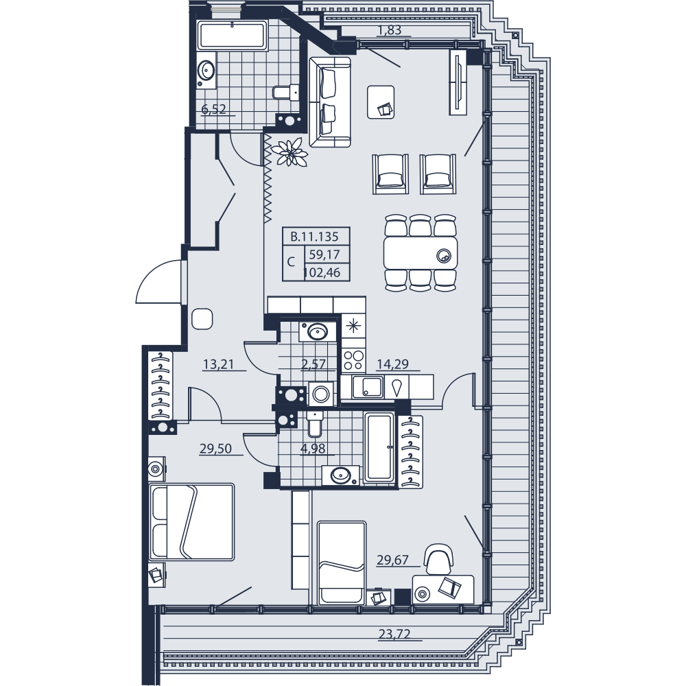 собственным санузлом в евро-трехкомнатных и евро-четырехкомнатных квартирах