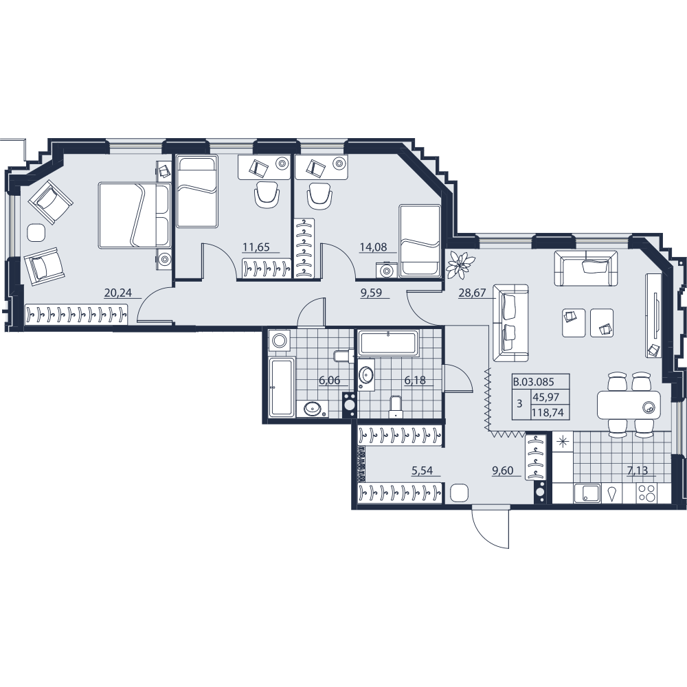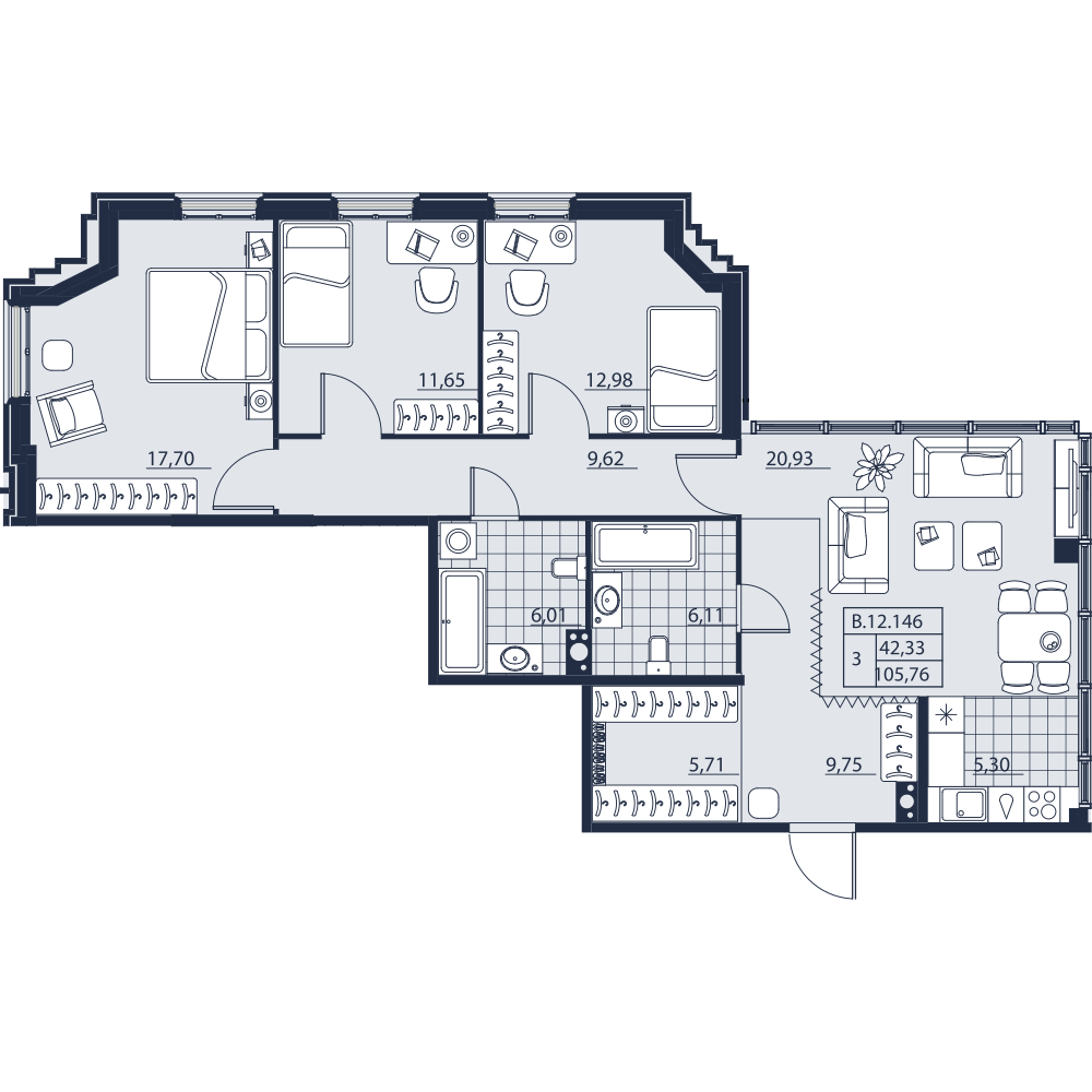 Трехкомнатные квартиры в ЖК «Alter (Альтер)»
