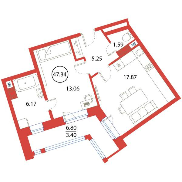 - Цена за м2 280 800 руб