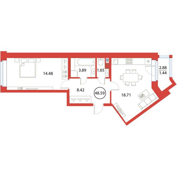 - Цена за м2 288 900 руб
