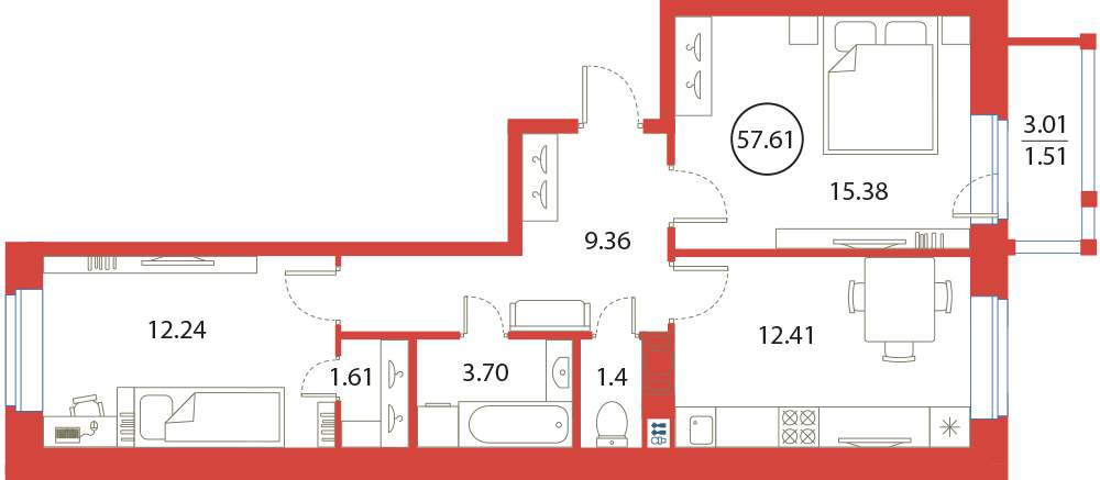2-комнатная (57.61м2)