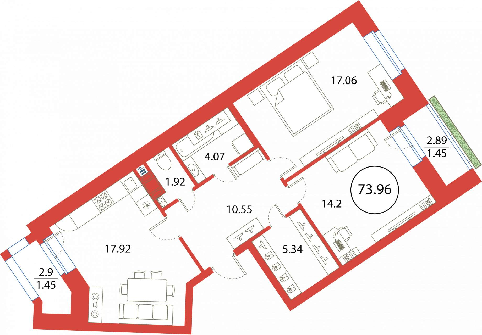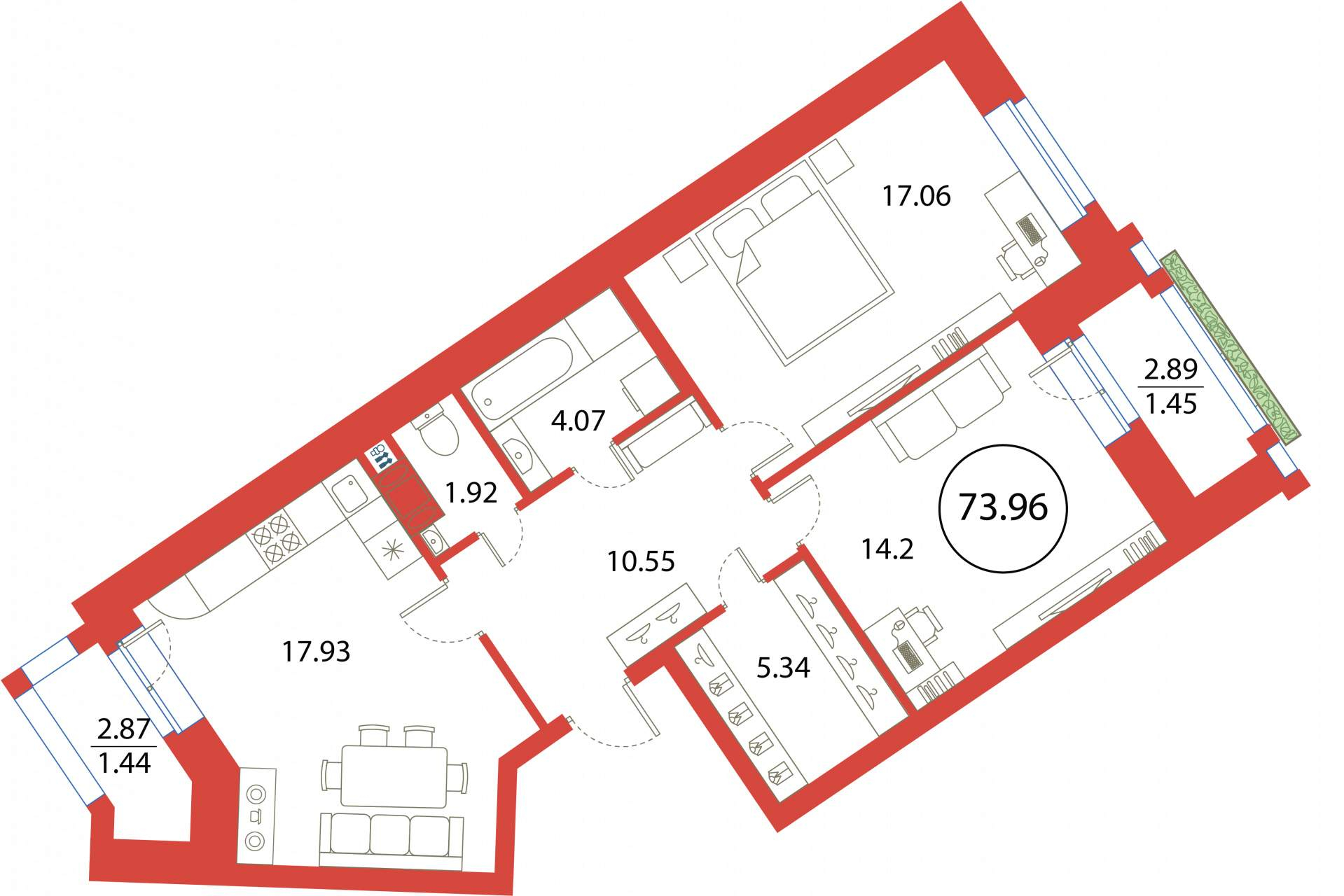 2-комнатная (73.96м2)
