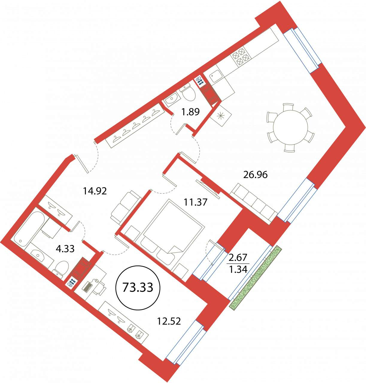 2-комнатная (73.33м2)