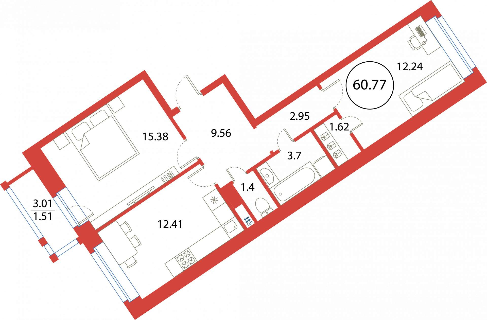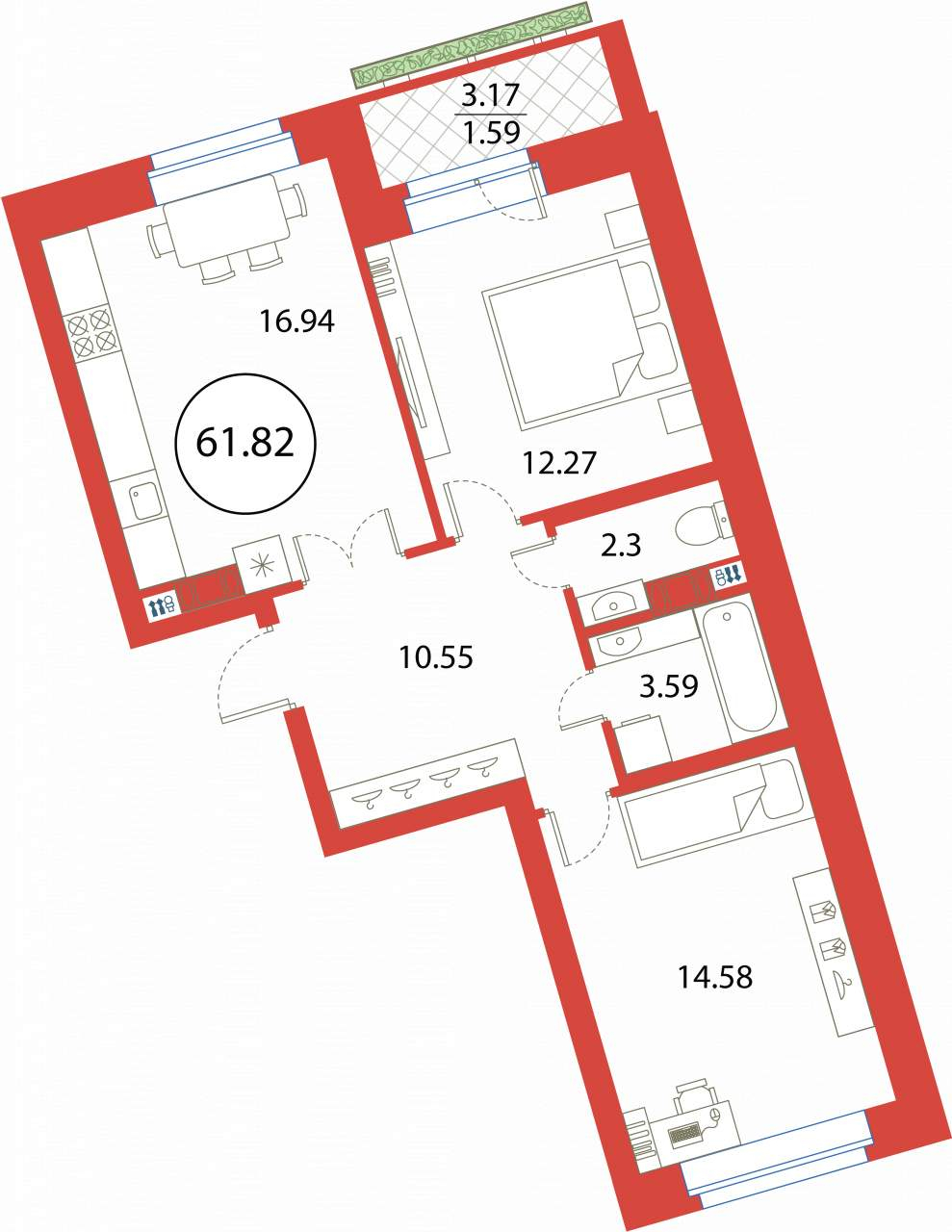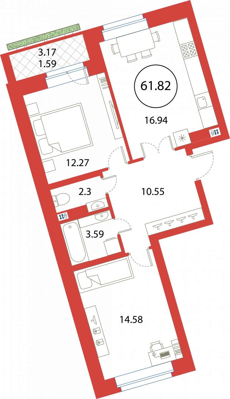 2-комнатная (61.82м2)