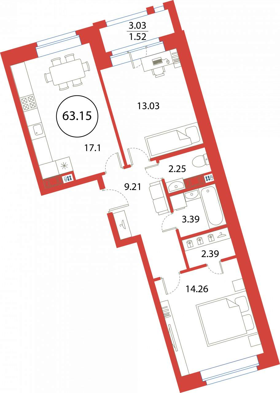 2-комнатная (63.15м2)