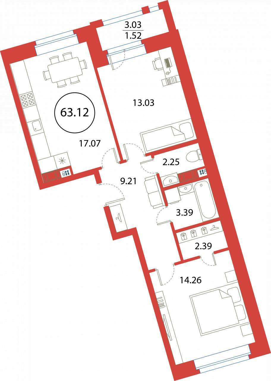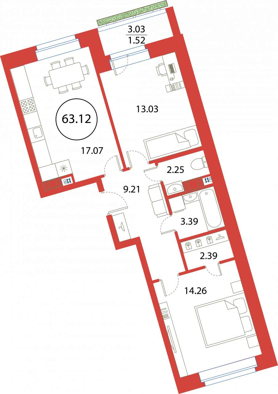 2-комнатная (63.12м2)