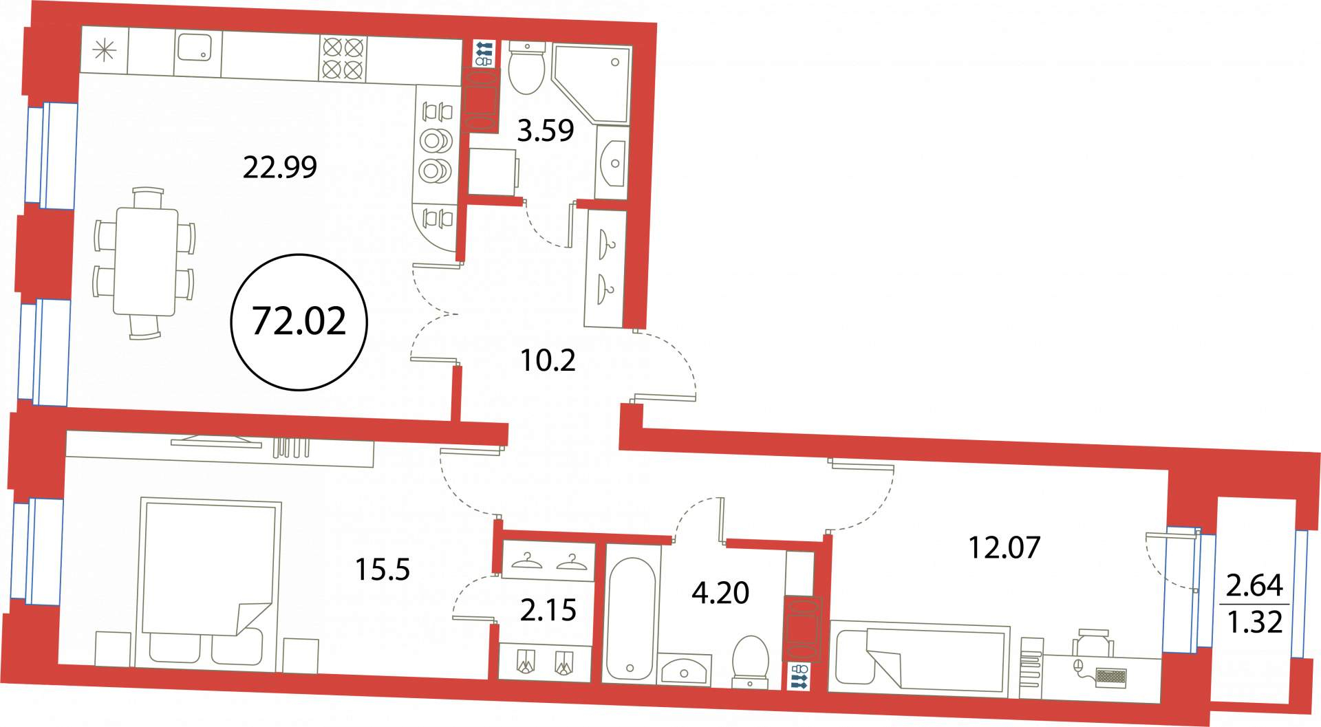 2-комнатная (72.02м2)