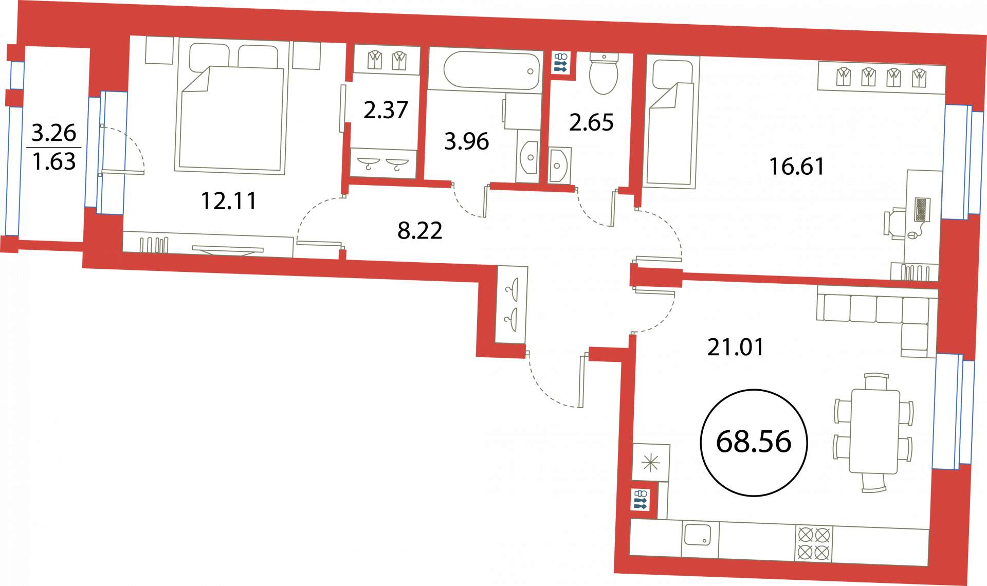 2-комнатная (68.56м2)