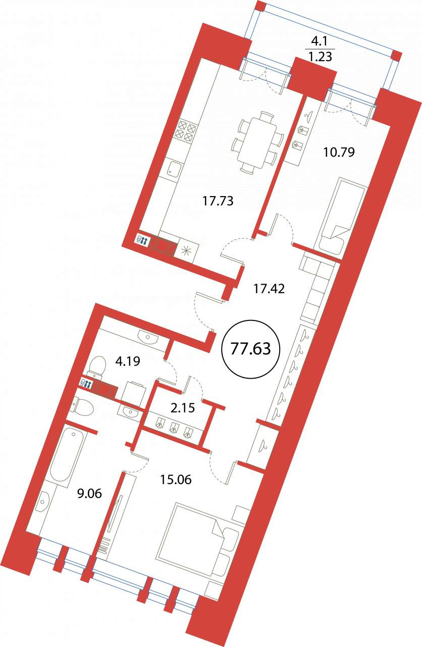 2-комнатная (77.63м2)