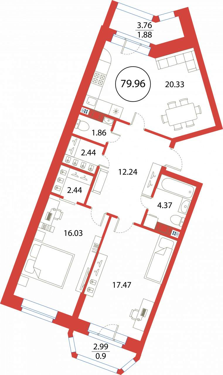 2-комнатная (79.96м2)