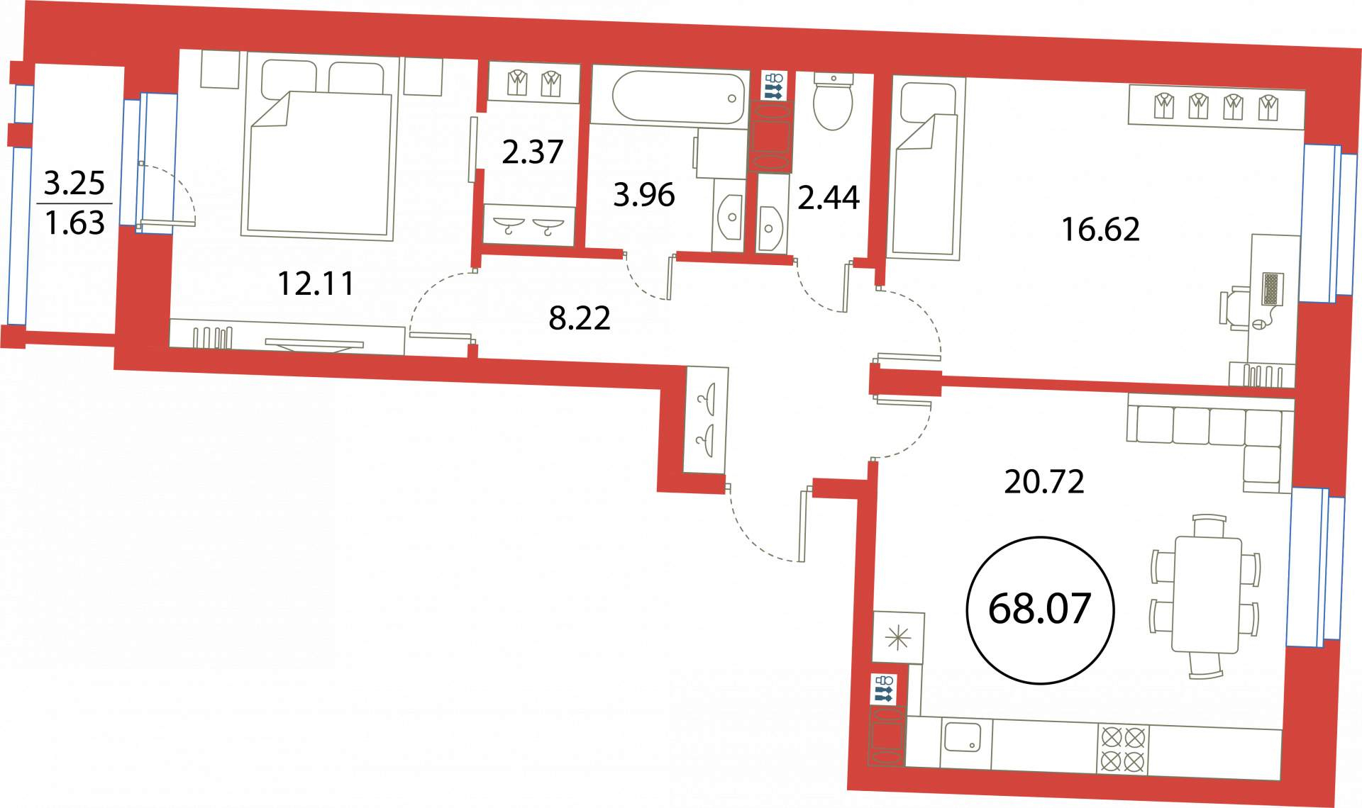 2-комнатная (68.07м2)