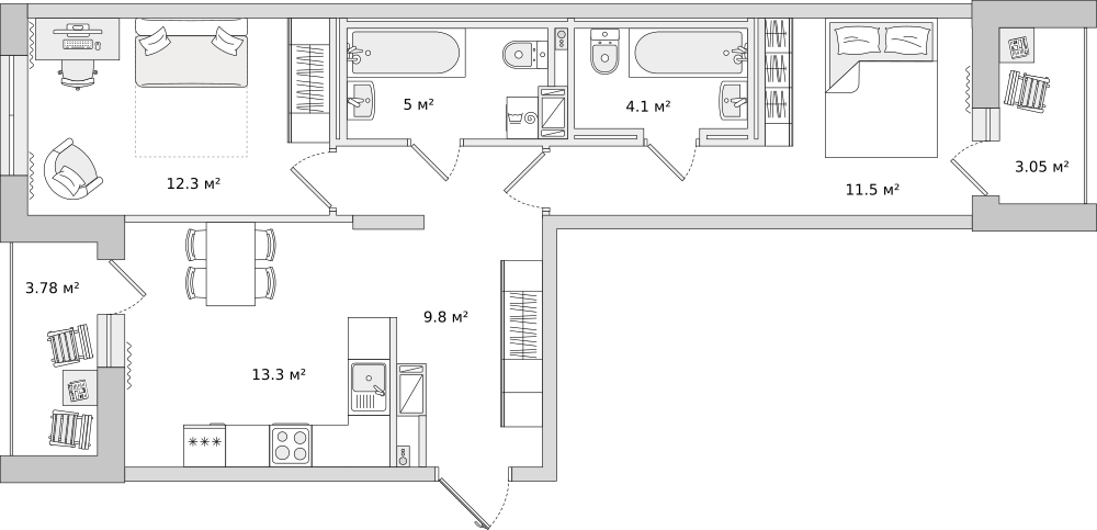 Мы продумали все детали и нашли решения для самых взыскательных покупателей: большие кухни‐гостиные для вечерних семейных посиделок и шумных вечеринок с друзьями или просторные террасы для отдыха и релаксации, постирочные зоны вдали от спальных комнат или ванные комнаты с окном для роскошной жизни.