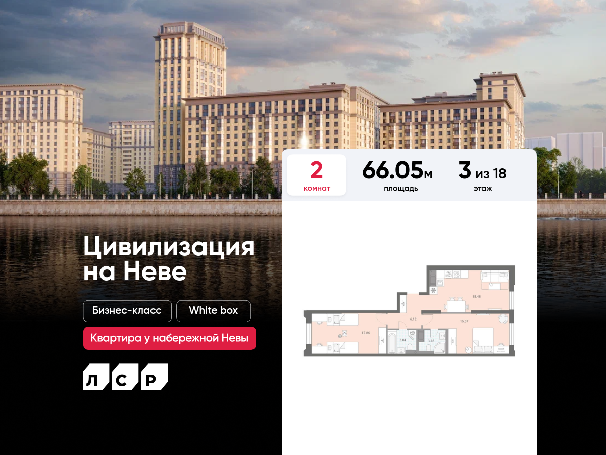 Двухкомнатные квартиры в ЖК «Цивилизация на Неве»