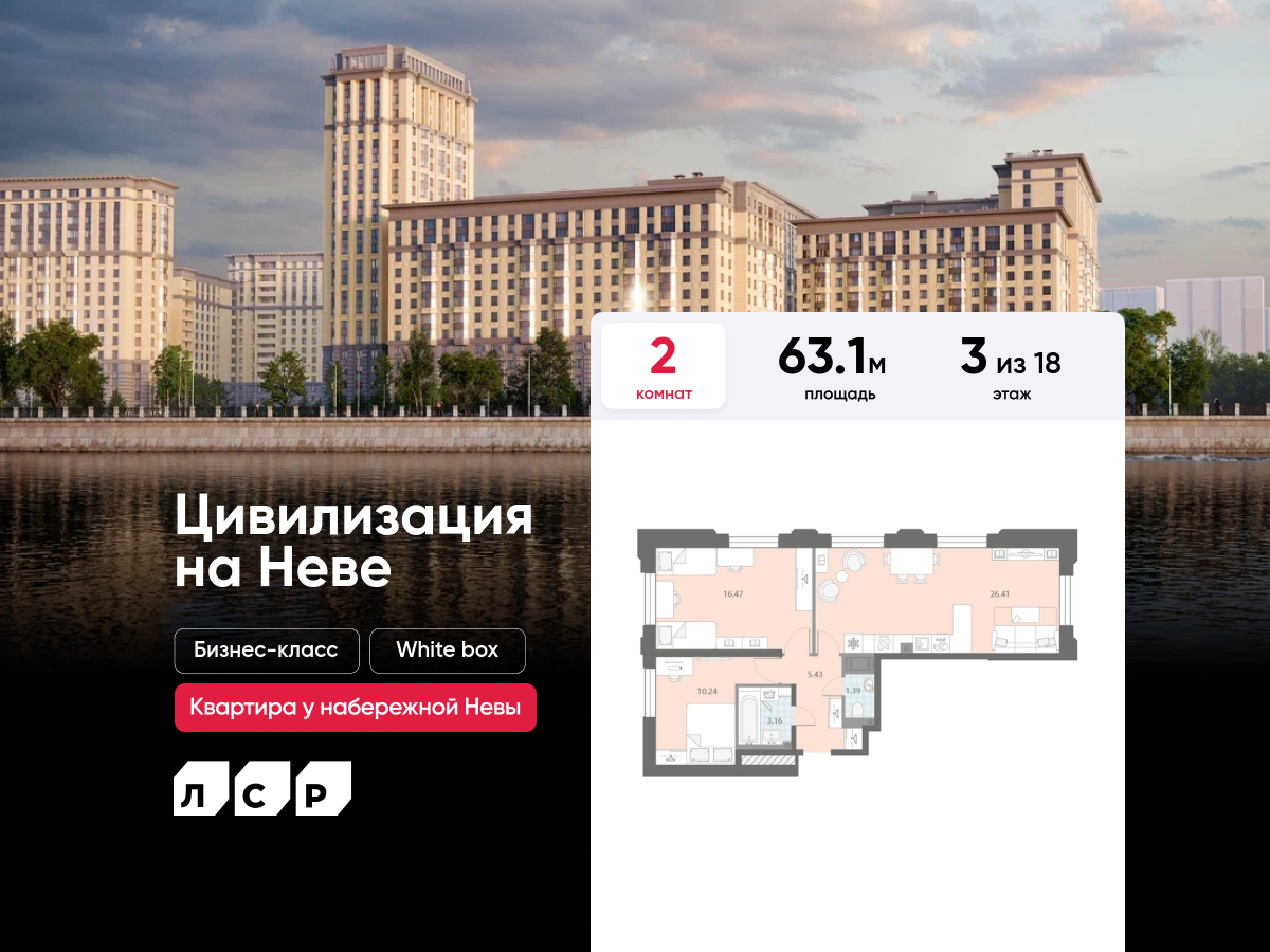 Двухкомнатные квартиры в ЖК «Цивилизация на Неве»