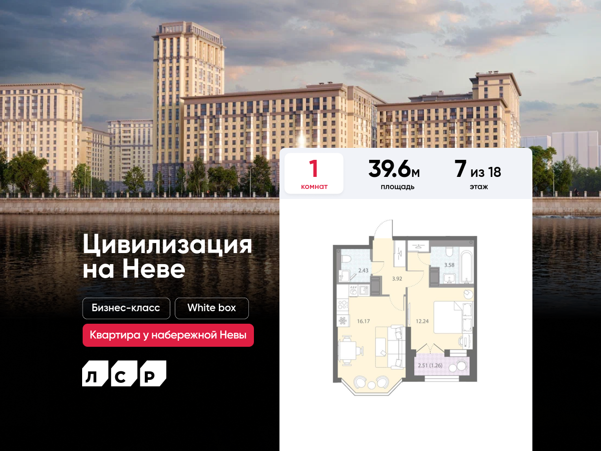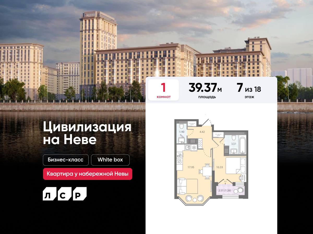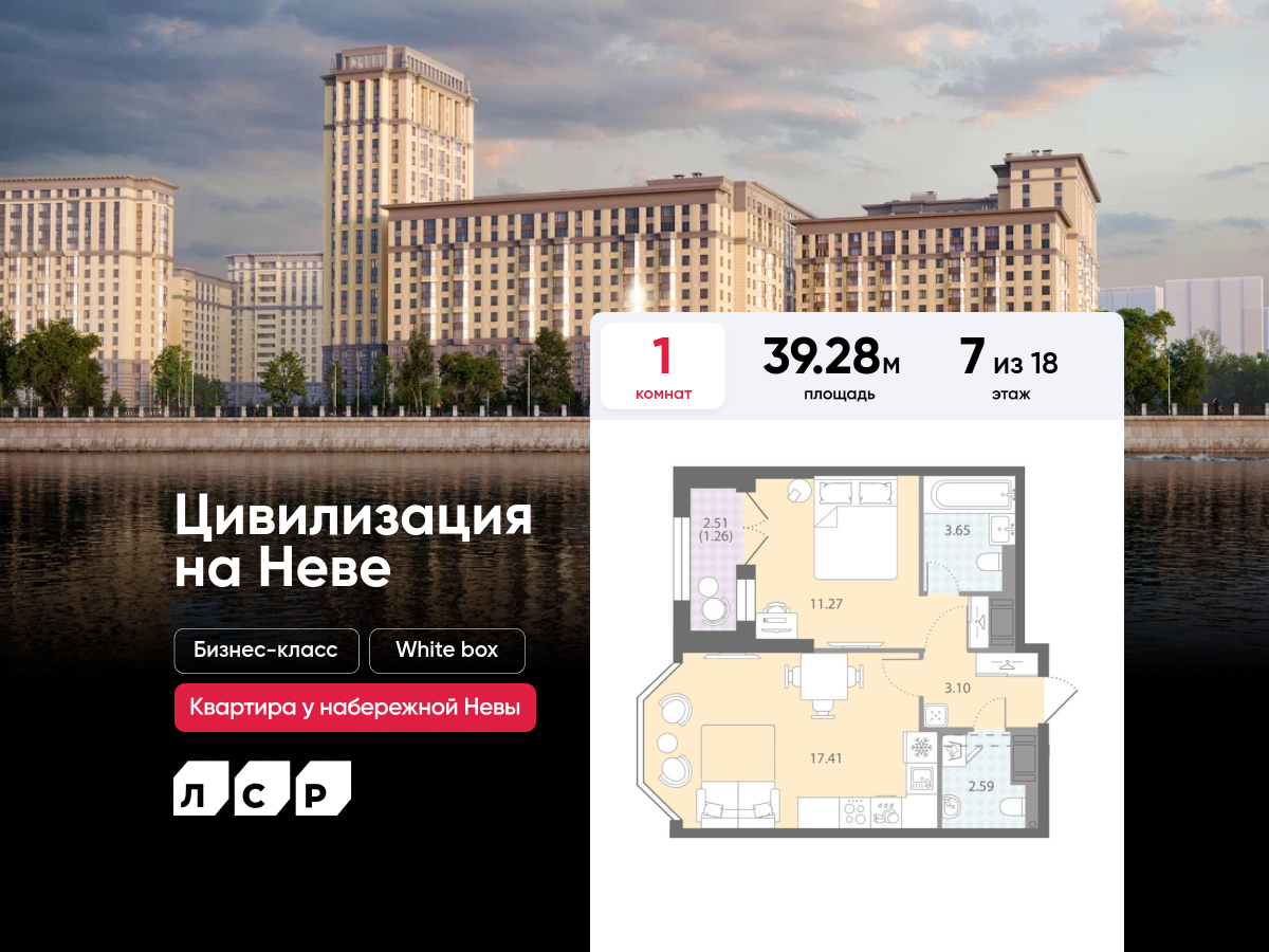 Евро однокомнатные квартиры в ЖК «Цивилизация на Неве»