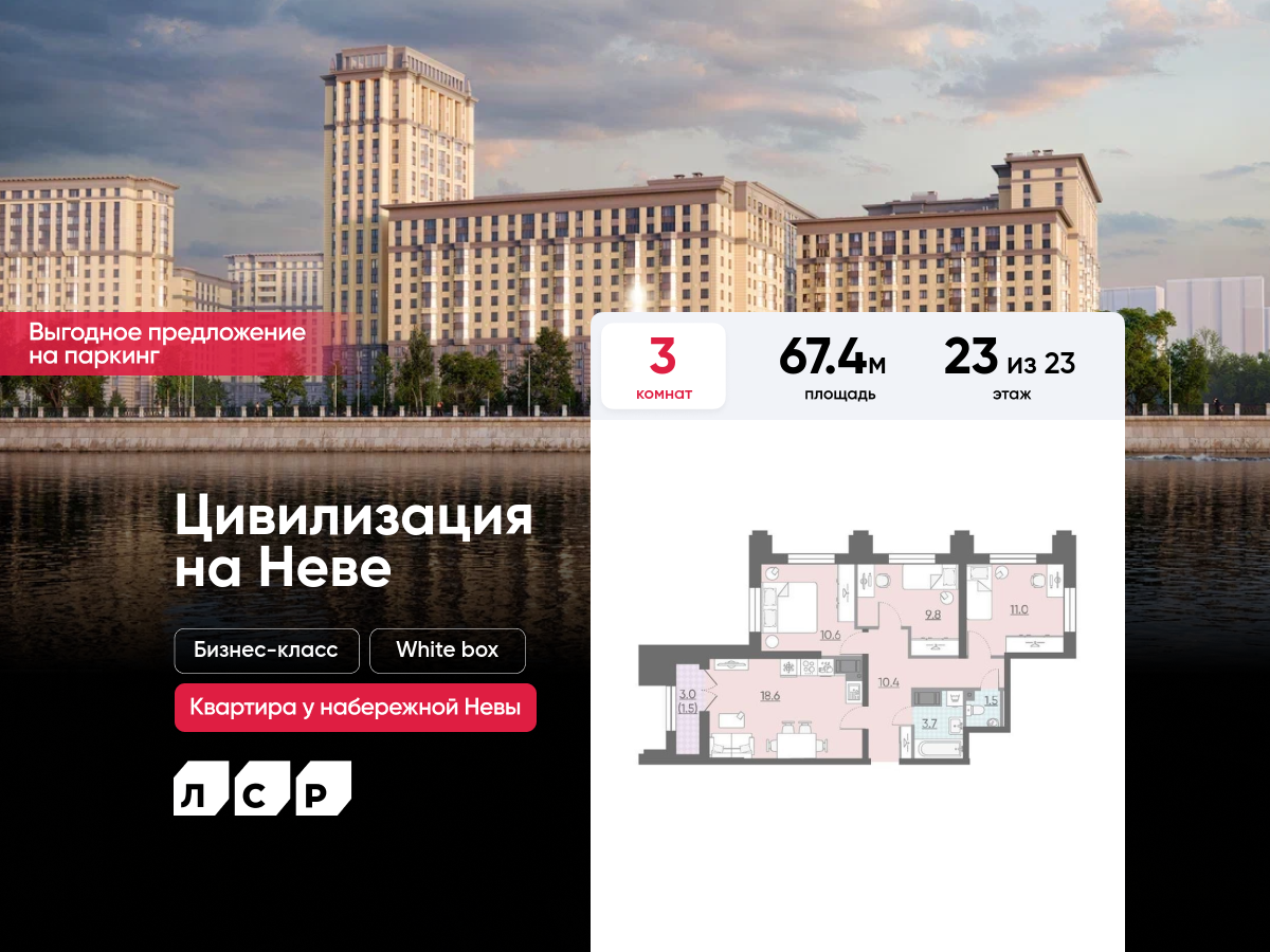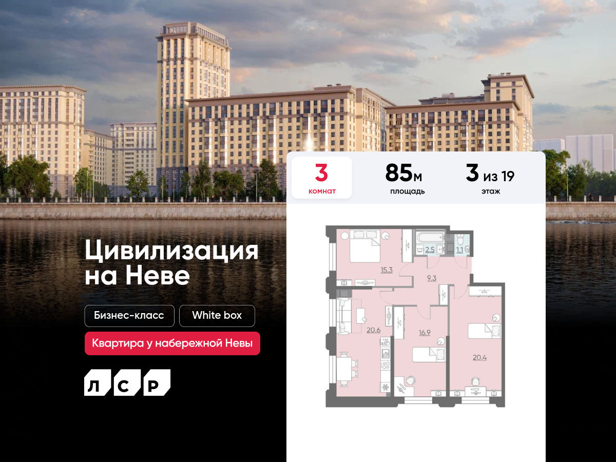 Евро трехкомнатные квартиры в ЖК «Цивилизация на Неве»
