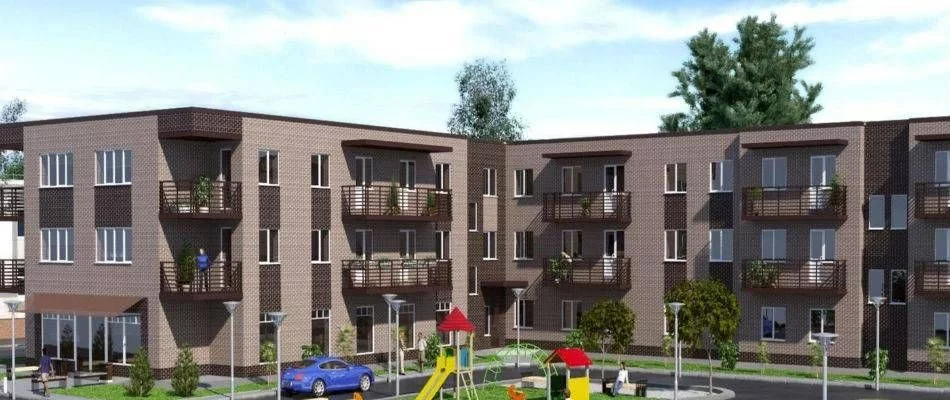 трехэтажный комплекс на 48 квартир, строящийся в Приморске Ленинградской области.