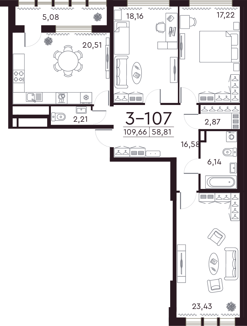Трехкомнатные квартиры в ЖК Familia (Фамилия)