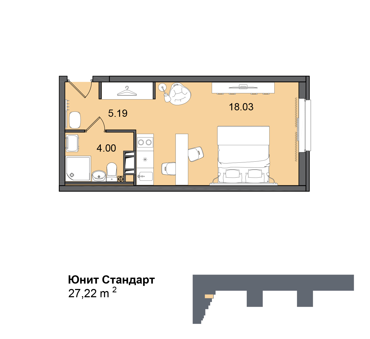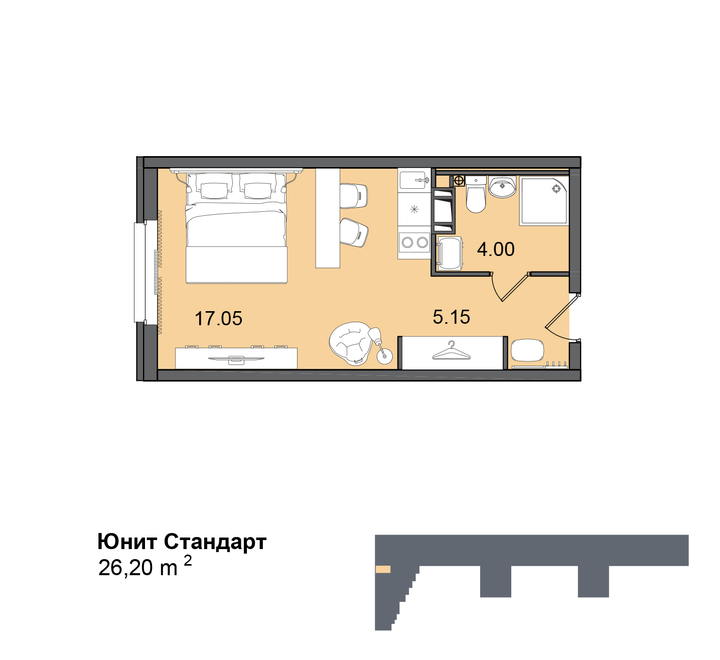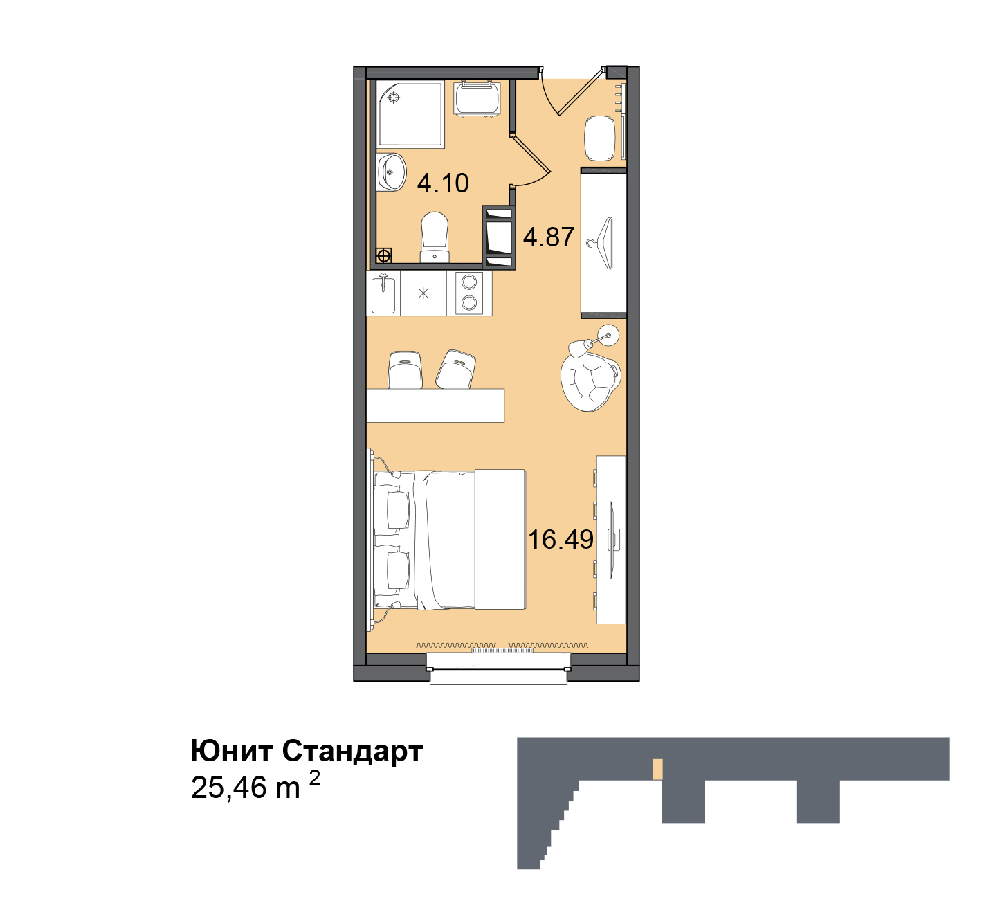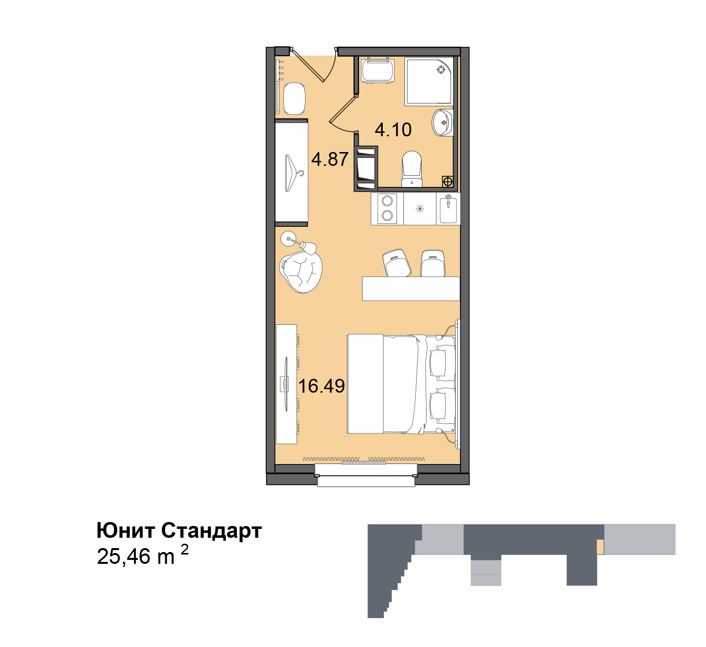 Данный комплекс представляет собой апартаменты с сервисом призванным максимально сохранить самое важное для постояльцев - их время. На втором этаже разместится коворкинг где можно арендовать место для проведения конференций. Помимо того здесь будет обеспечена круглосуточная охрана с видеонаблюдением. При возникновении вопросов постояльцы смогут обратиться в консьерж-службу. Благодаря круглосуточной работе диспетчерской службы всегда можно вызвать специалиста по ремонту, электрика, сантехника или грузчика. При необходимости можно воспользоваться услугой курьера или доставкой продуктов и даже полноценных блюд в номера. Уборка и замена белья с полотенцами также входит в общий сервис, существуют, в том числе услуги прачечной. Все номера уже снабжены готовой отделкой с мебелью и оснащены необходимой техникой. На первом этаже располагаются коммерческие помещения среди которых можно будет найти как продуктовые магазины и кафе, так и точки бытового обслуживания.