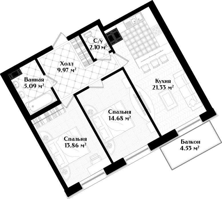 Двухкомнатные квартиры в Клубный дом Идеалист