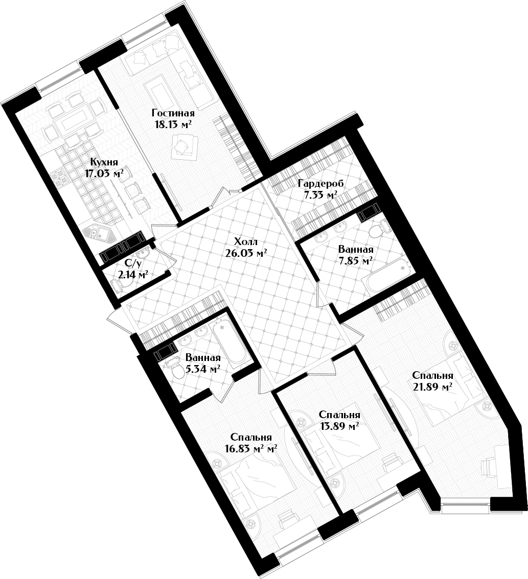 Четырехкомнатные квартиры в Клубный дом Идеалист
