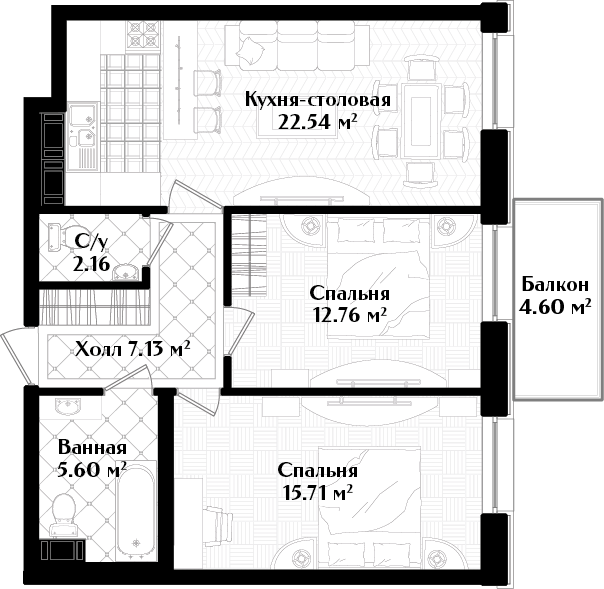 Евро двухкомнатные квартиры в Клубный дом Идеалист