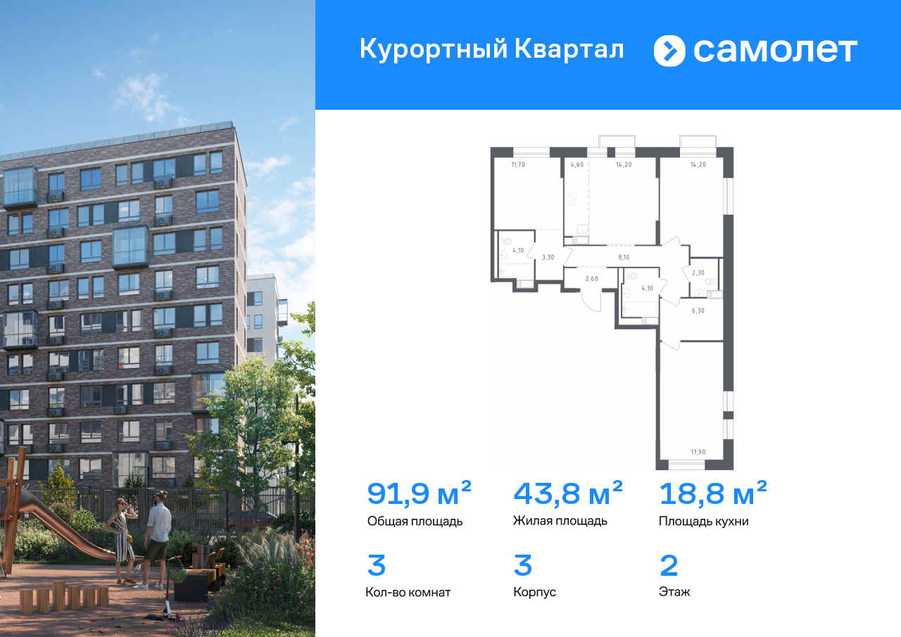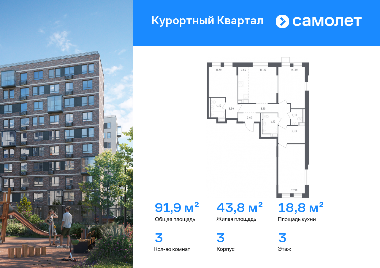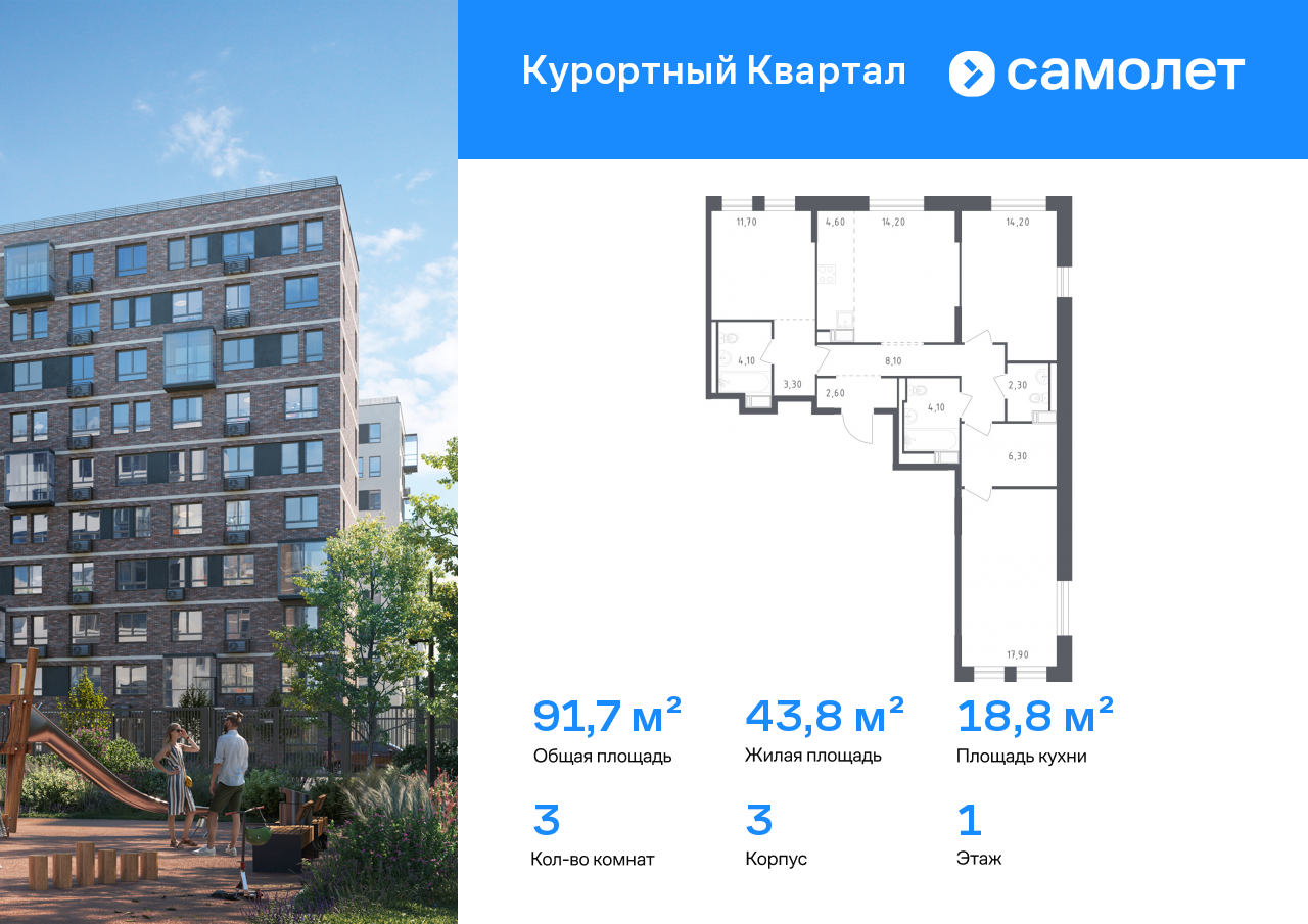 Евро трехкомнатные квартиры в ЖК Курортный квартал