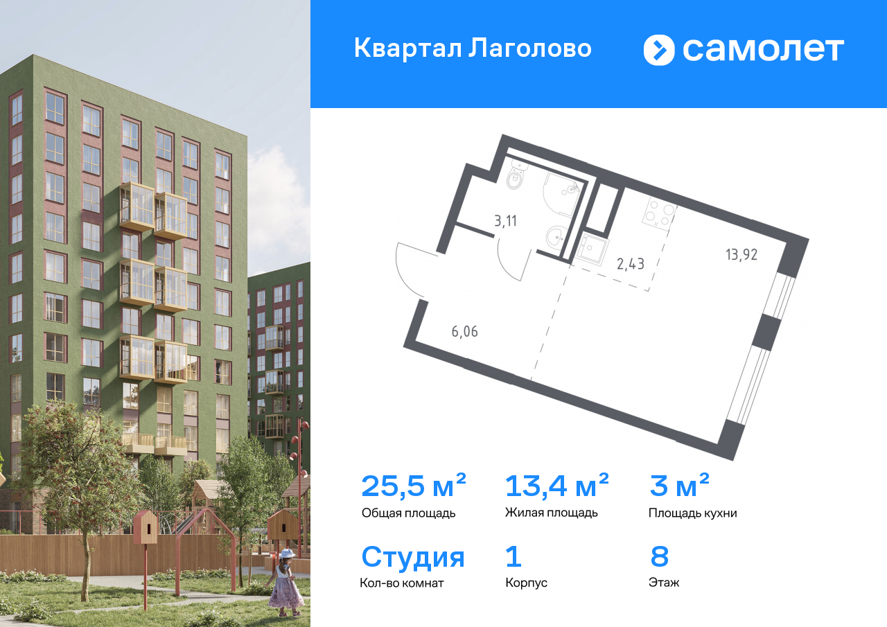 Самолёт имеет репутацию надежного застройщика и сдал уже более 268 объектов. Помимо жилых помещений застройщик планирует возвести 8 детских садов, 3 школы и поликлинику. Для удобства жителей застройщик планирует сделать входы на уровне земли. На первом этаже будут размещены нежилые помещения.