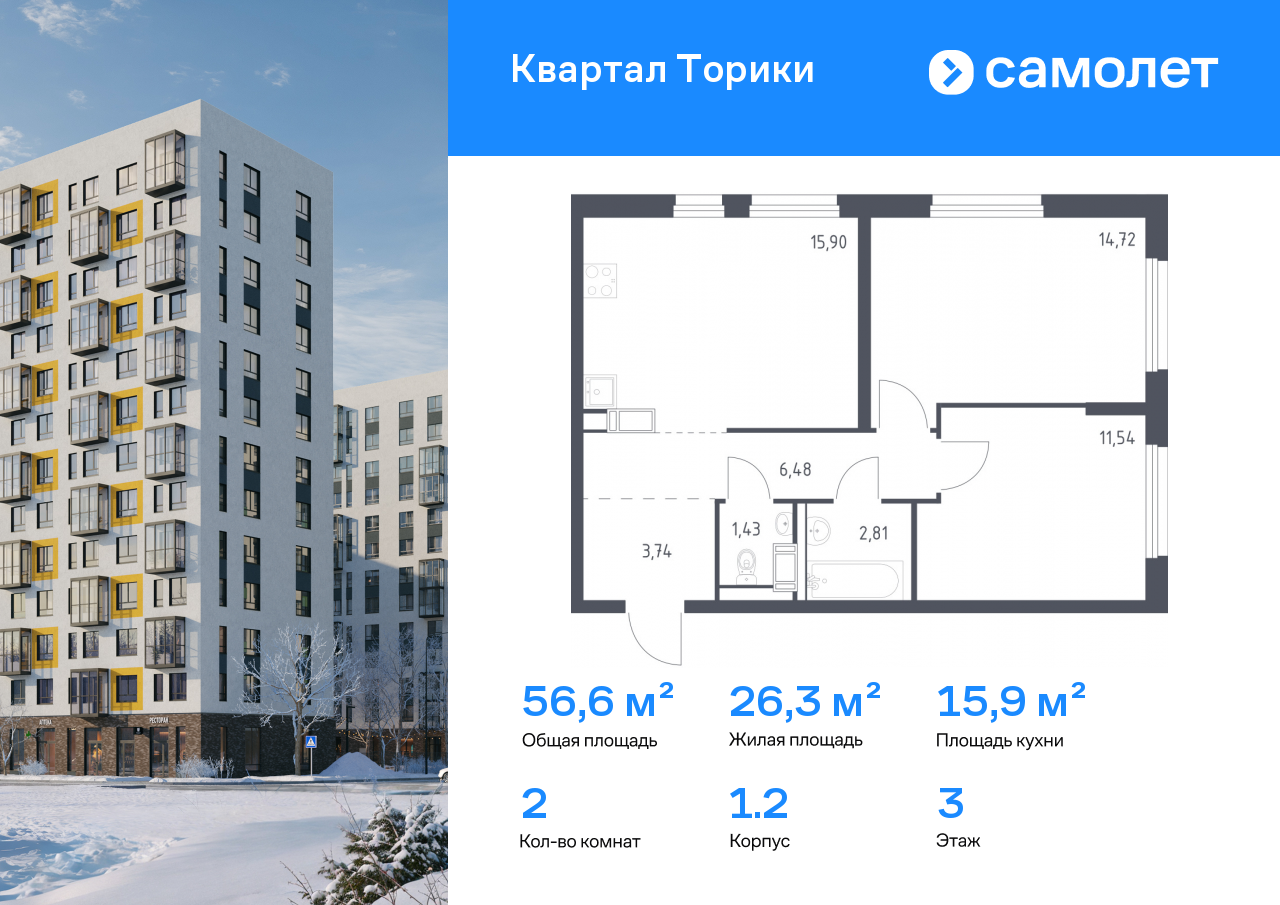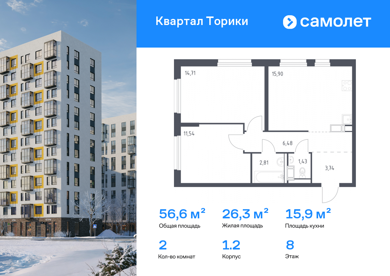 - Цена за м2 156 124 руб