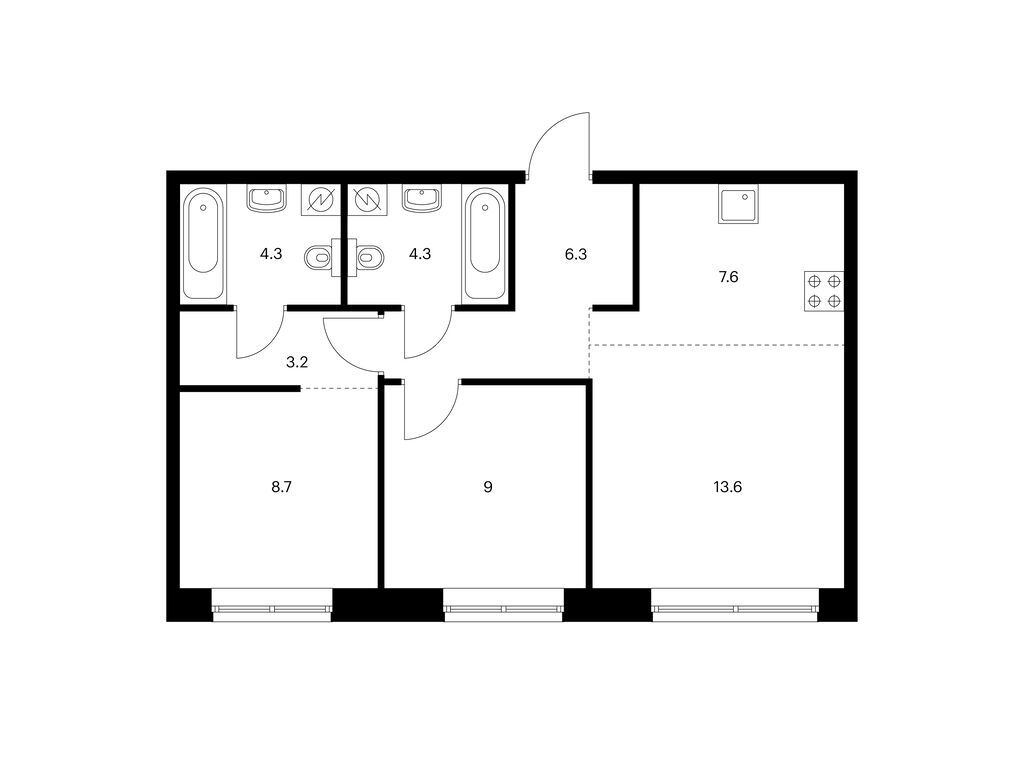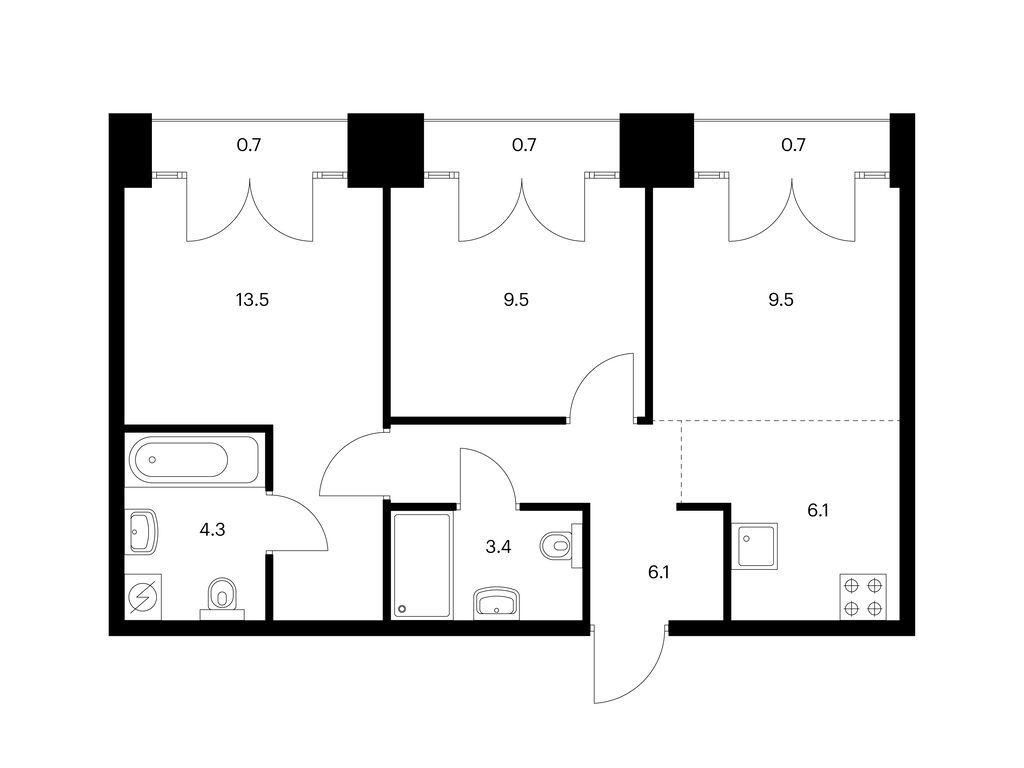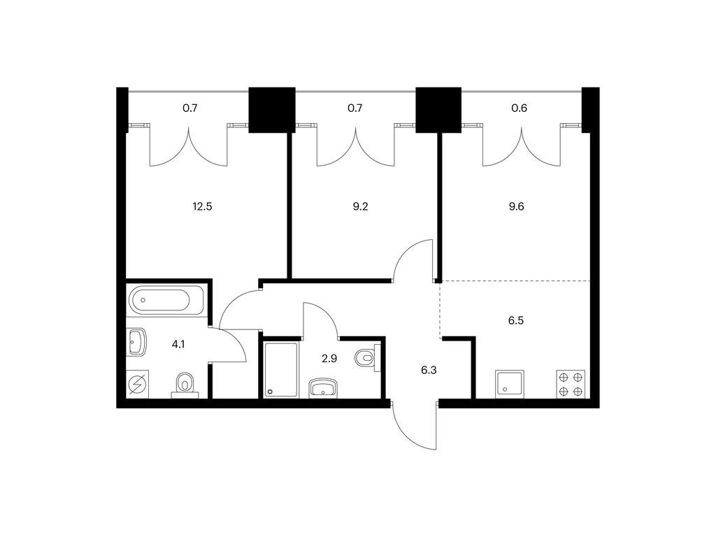 Во всех квартирах будут трёхметровые потолки и окна в пол. На 8-м и 9-м этажах будут лоджии, а на других этажах — французские и обычные балконы. Также здесь можно выбрать квартиру с террасой или патио.