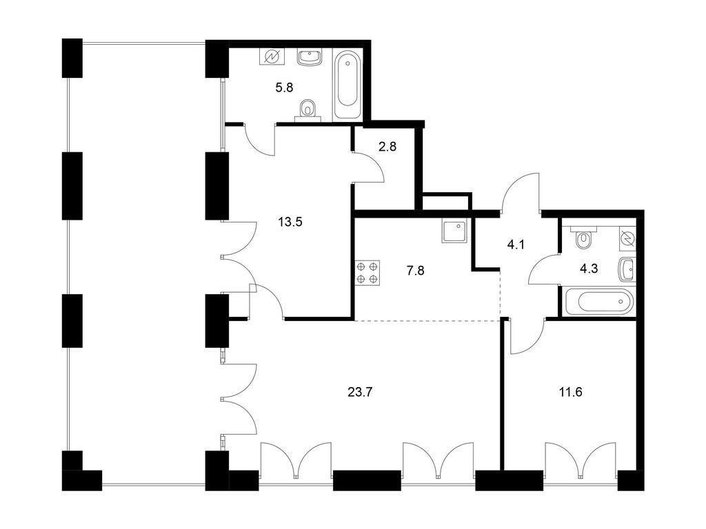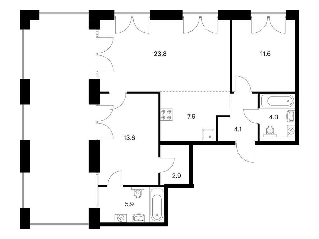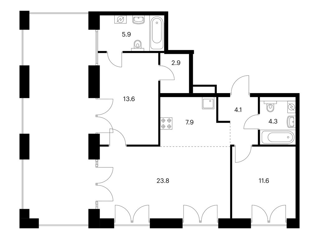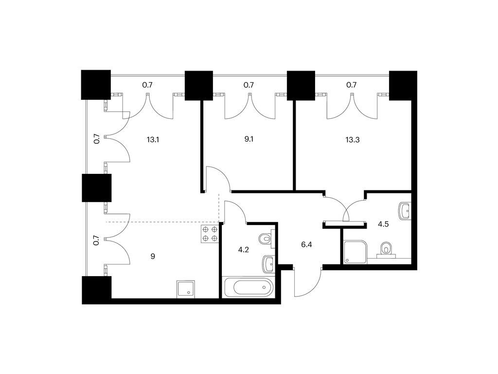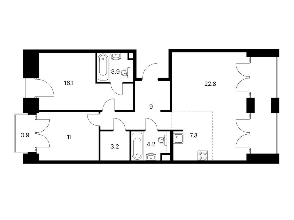 Во всех квартирах будут трёхметровые потолки и окна в пол. На 8-м и 9-м этажах будут лоджии, а на других этажах — французские и обычные балконы. Также здесь можно выбрать квартиру с террасой или патио.