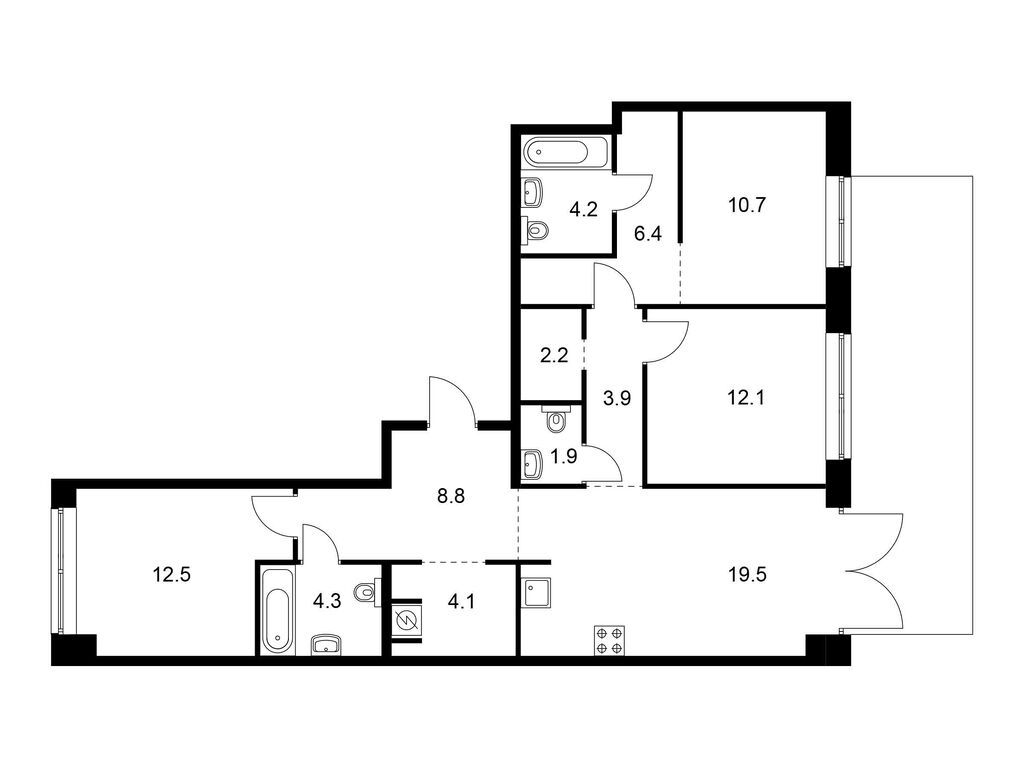 Во всех квартирах будут трёхметровые потолки и окна в пол. На 8-м и 9-м этажах будут лоджии, а на других этажах — французские и обычные балконы. Также здесь можно выбрать квартиру с террасой или патио.