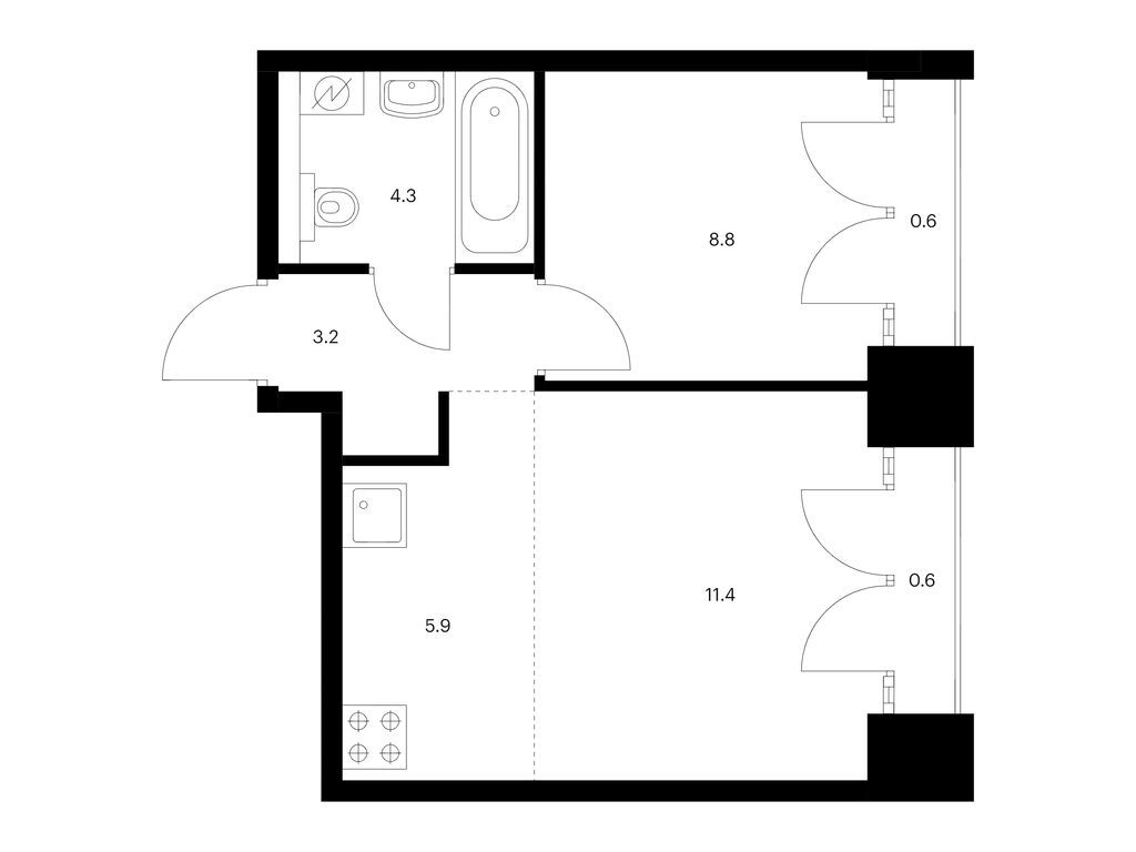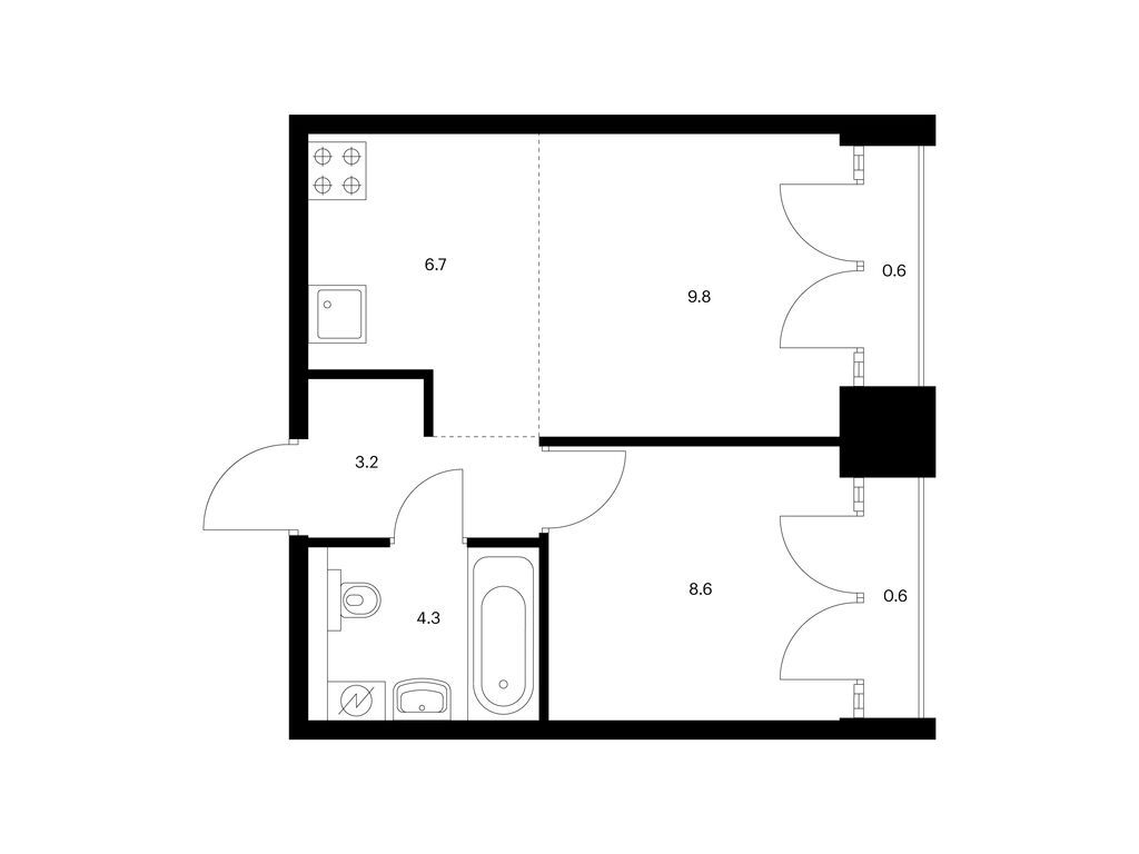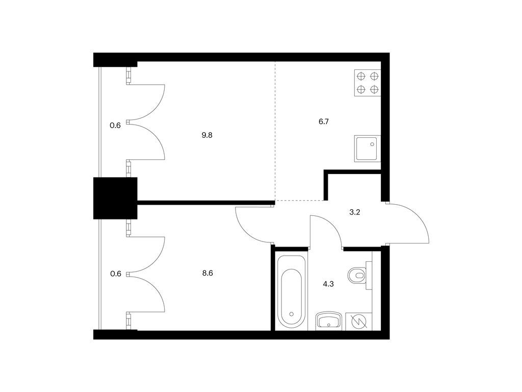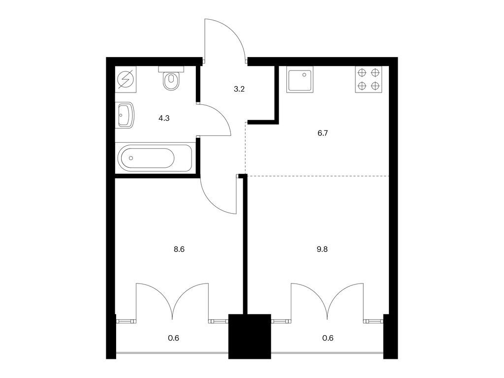 Во всех квартирах будут трёхметровые потолки и окна в пол. На 8-м и 9-м этажах будут лоджии, а на других этажах — французские и обычные балконы. Также здесь можно выбрать квартиру с террасой или патио.