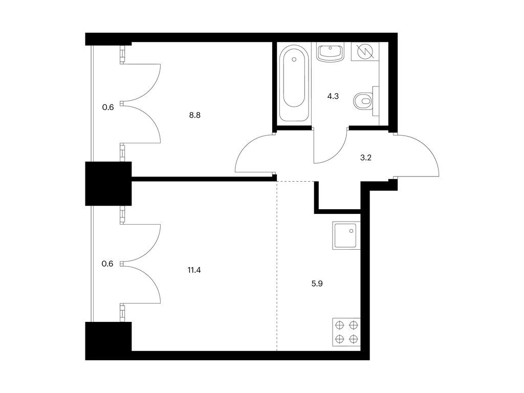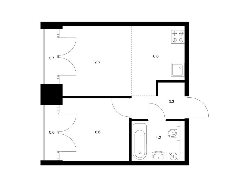 Во всех квартирах будут трёхметровые потолки и окна в пол. На 8-м и 9-м этажах будут лоджии, а на других этажах — французские и обычные балконы. Также здесь можно выбрать квартиру с террасой или патио.