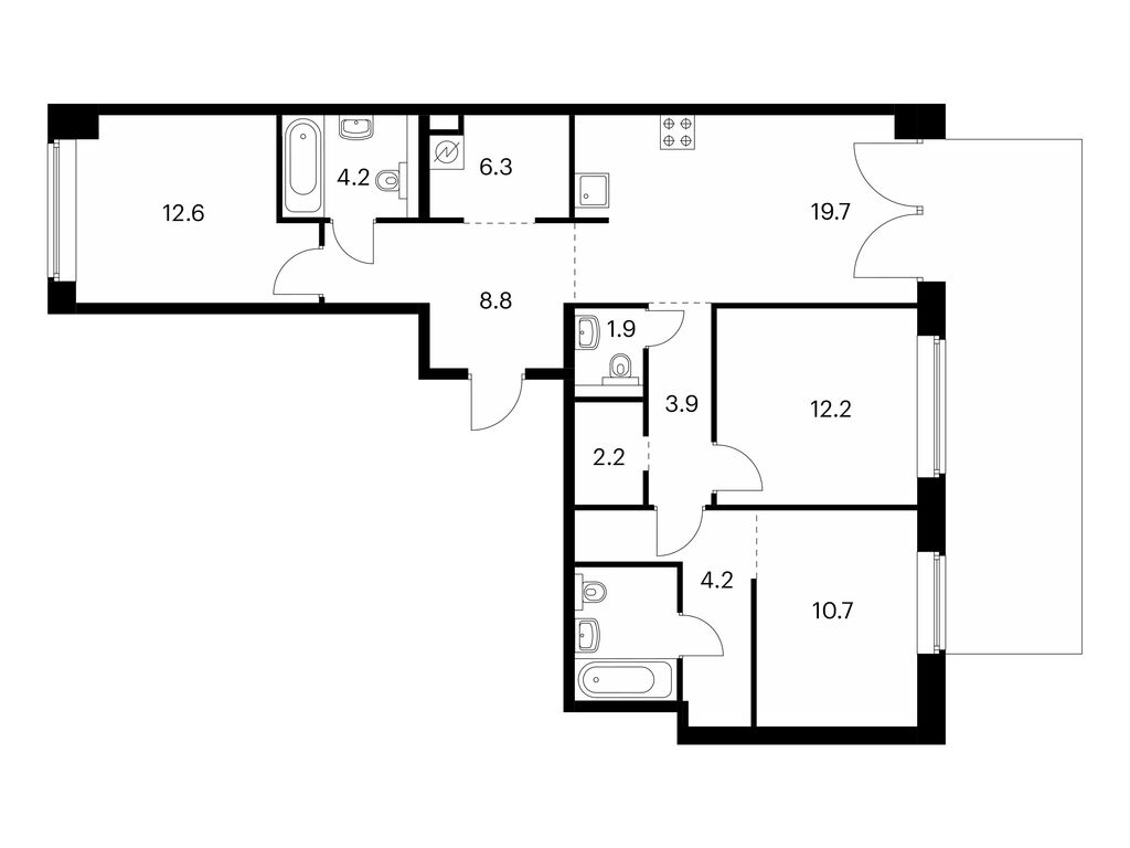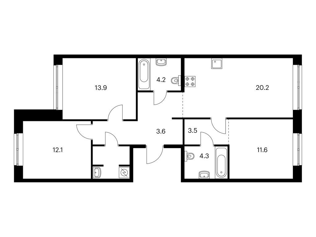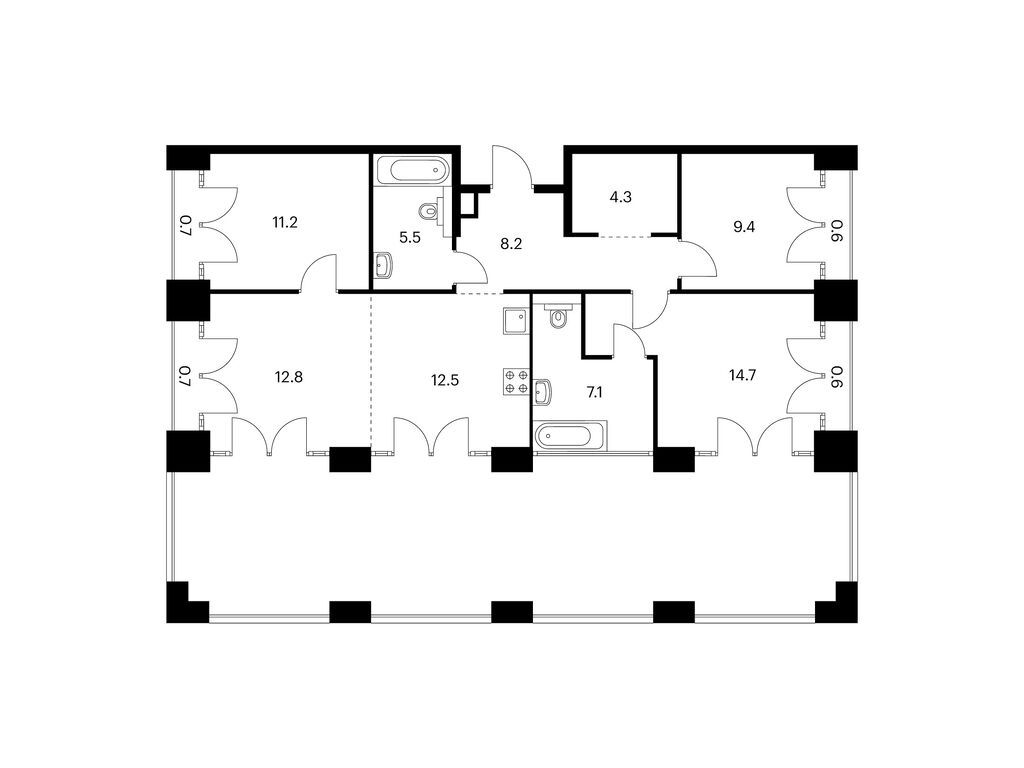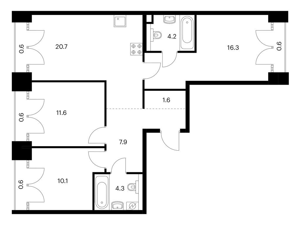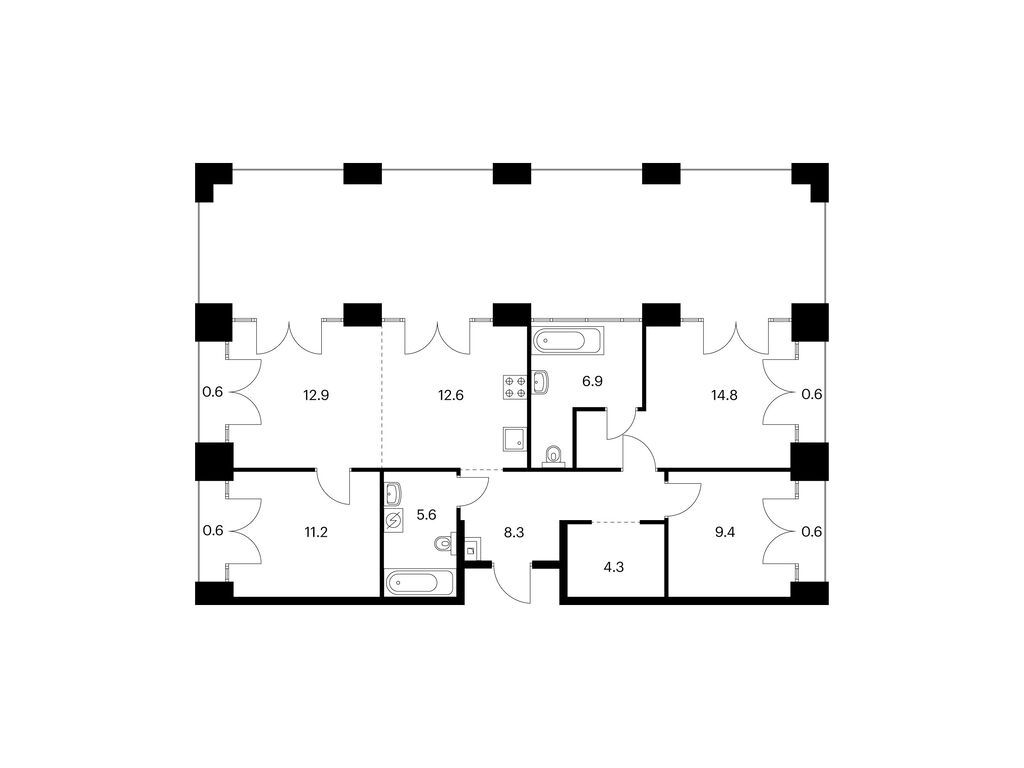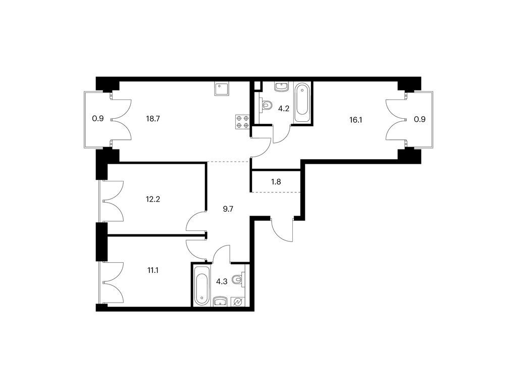 Во всех квартирах будут трёхметровые потолки и окна в пол. На 8-м и 9-м этажах будут лоджии, а на других этажах — французские и обычные балконы. Также здесь можно выбрать квартиру с террасой или патио.