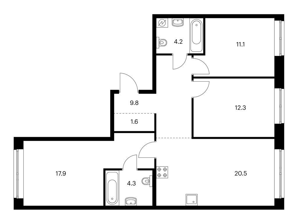 Евро трехкомнатные квартиры в Лермонтовский 54